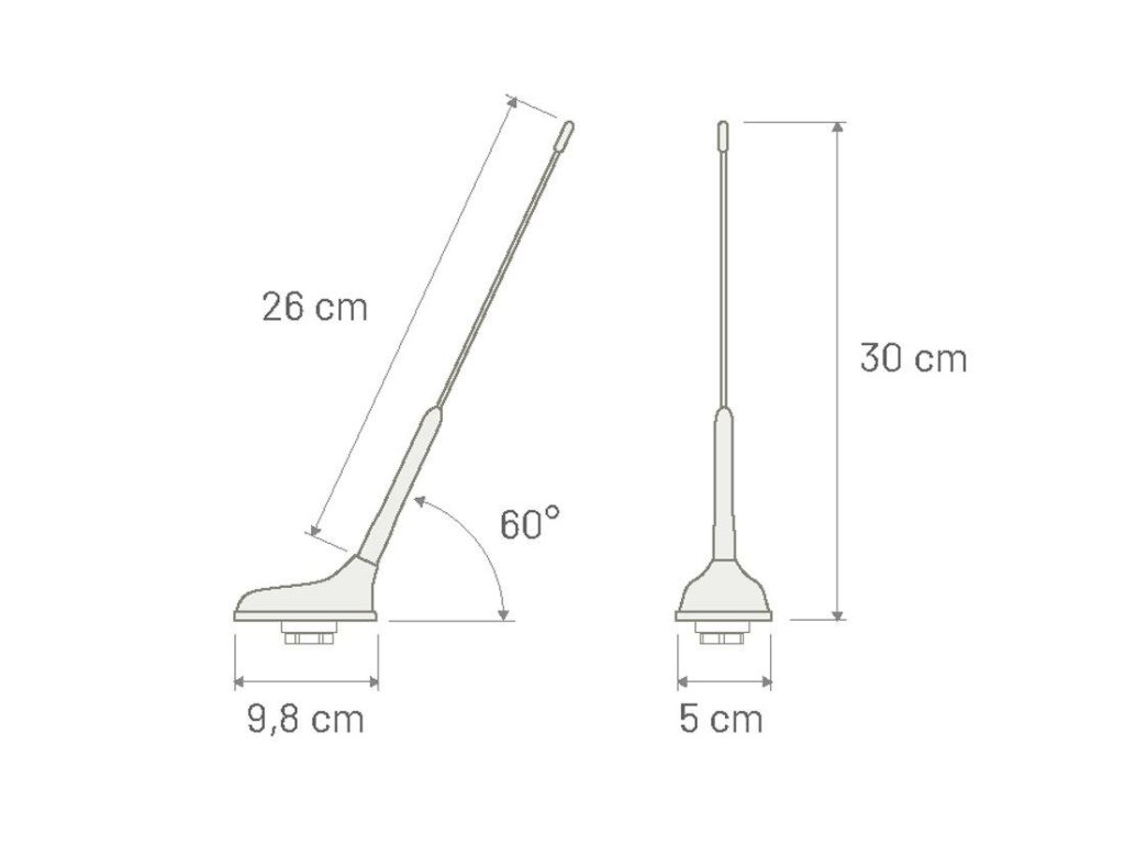 Použití do automobilů: na střechu pro osobní nebo nákladní automobily, možné použít jako náhradu za původní anténu. V případě požadavku na jiný typ konektoru na straně připojeného zařízení je možné použít adaptér.