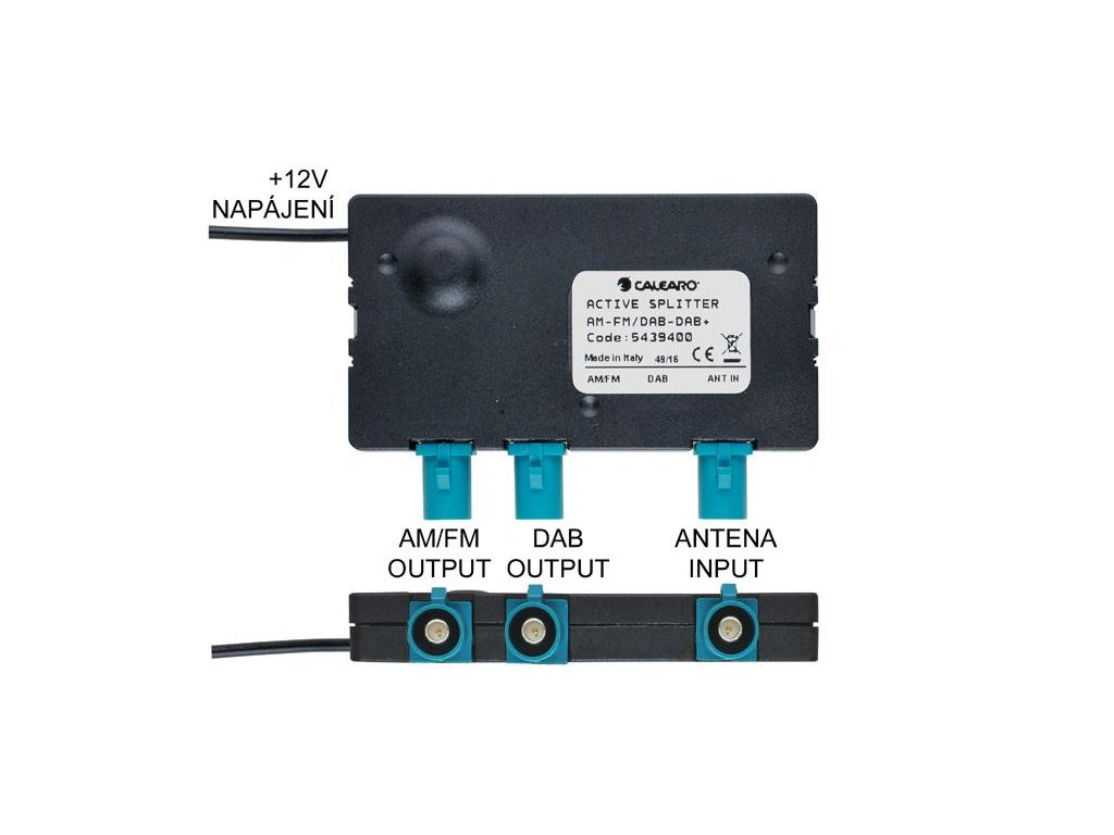 Rozbočovač radiového signálu pro příjem AM-FM analogového rádiového signálu a DAB-DAB + digitálního rádiového signálu určený pro pasivní autoantény.