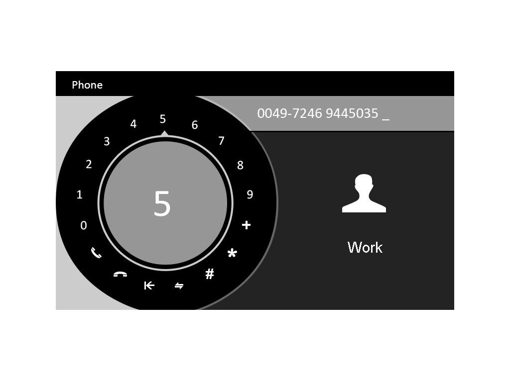 uživatelům volit z telefonního seznamu, prohlížet poslední hovory, oblíbené položky, hlasové vytáčení a také vytočit pomocí klávesnice na obrazovce. |