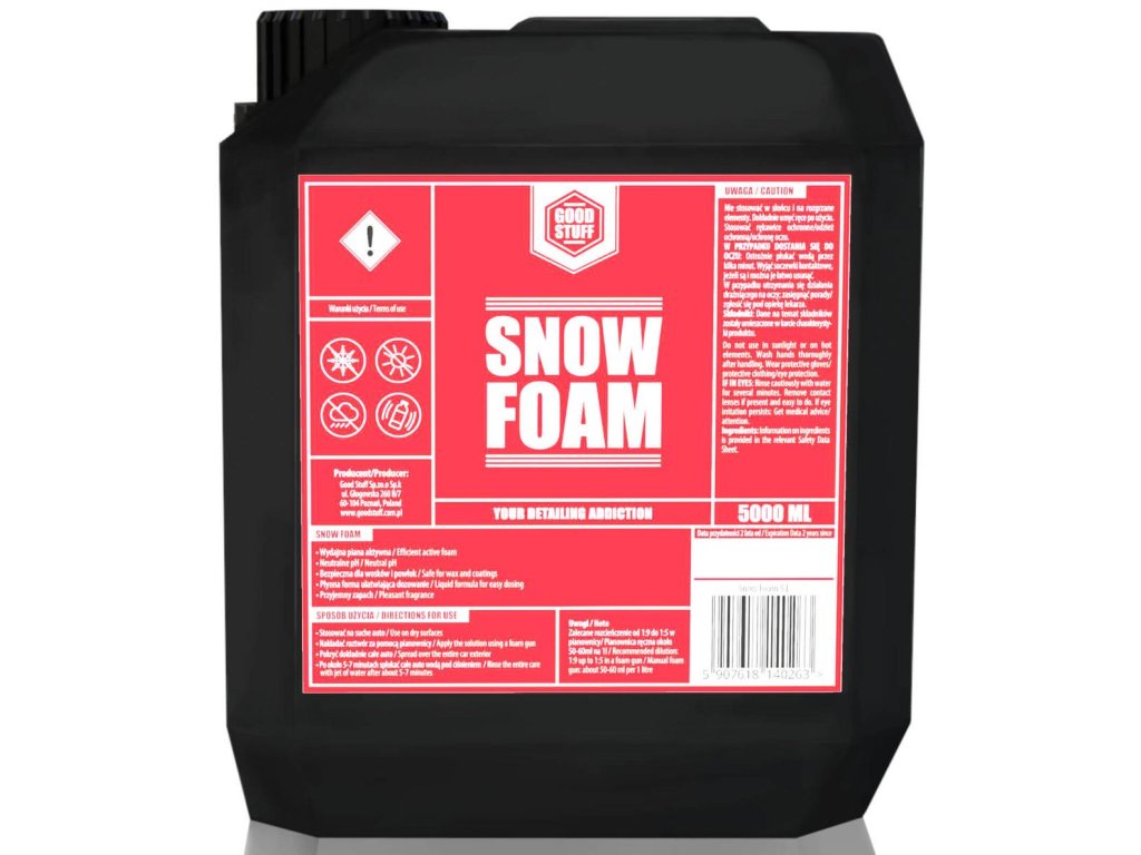 Good Stuff Snow Foam 5000 ml. Maximálně zhuštěná pěna s pH neutrálním složením určená pro předmytí auta. Good Stuff Snow Foam utváří na povrchu hustou pěnu.