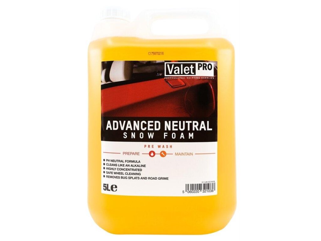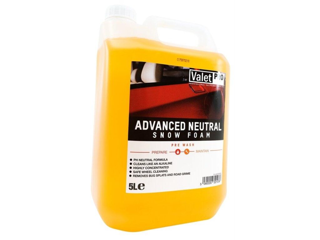 ValetPro Advanced Neutral Snow Foam je vysoce aktivní čisticí pěna, která z vašeho vozu odstraní i odolnější typy nečistot. ValetPro Advanced Neutral Snow Foam se používá k odstranění špíny v podobě silničního štěrku, zbytků hmyzu nebo jiných hrubých nečistot. ValetPro Advanced Neutral Snow Foam můžete použít s napěňovacím nástavcem, se kterým vytvoří silnou vrstvu aktivní pěny. Ta se na povrchu udrží opravdu dlouho a o to déle pracuje na odstranění nečistot.