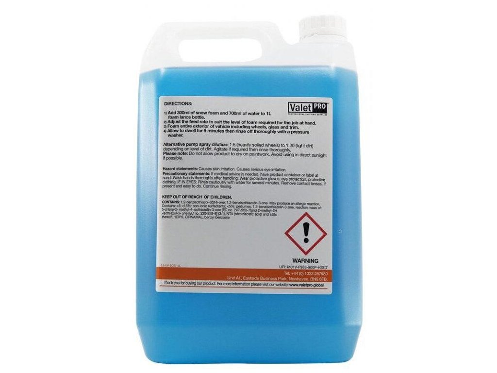 Vysoce koncentrovaná pH neutrální pěna ValetPro Foamula 1 Snow Foam je určena pro všestranné použití. Vytváří hustou aktivní pěnu s perfektním čisticím účinkem. Použít ji můžete jak s pomocí profesionálních foam lance adaptérů, tak i s pomocí ručních pěnovačů nebo postřiků. ValetPro Foamula 1 Snow Foam je šetrná k voskům i sealantům.