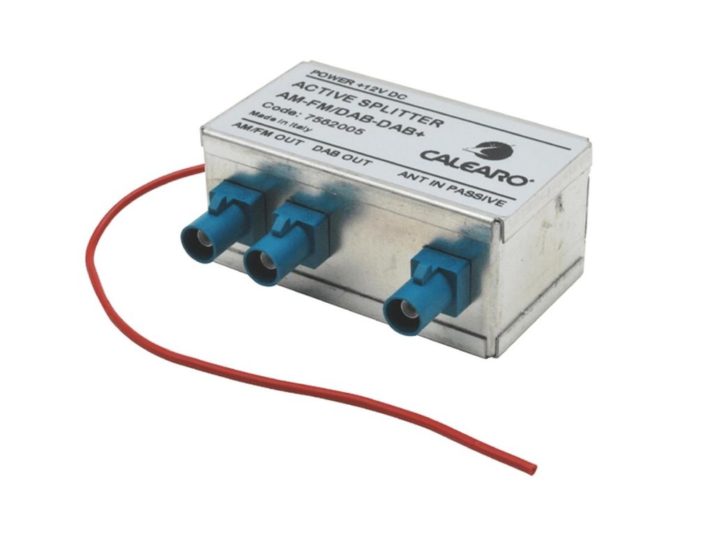 AM-FM / DAB-DAB+ aktivní rozbočovač radiového signálu pro příjem AM-FM analogového rádiového signálu a DAB-DAB + digitálního rádiového signálu. Rozbočovač umožňuje příjem DAB-DAB + signálu pokud je připojen k pasivní rádiové anténě pro AM-FM. Rozbočovač je aktivní a je nutné jej připojit k napájení 12V.