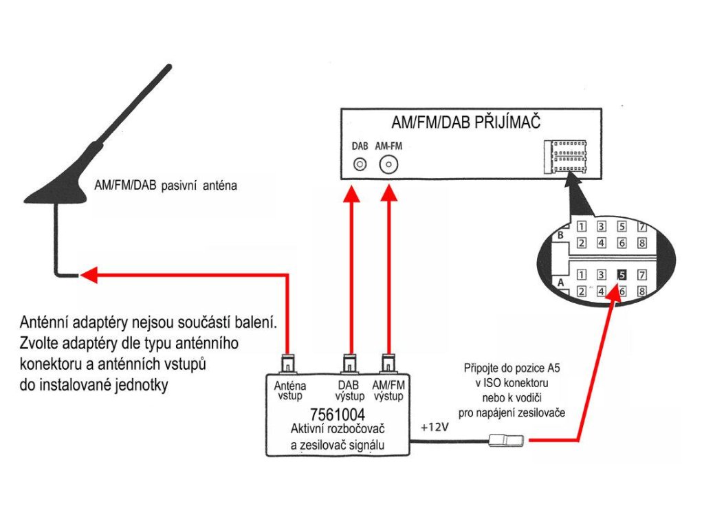 Rozbočovač radiového signálu pro příjem AM-FM analogového rádiového signálu a DAB-DAB + digitálního rádiového signálu určený pro aktivní nebo pasivní autoantény AM / FM připravené pro příjem digitálního signálu.