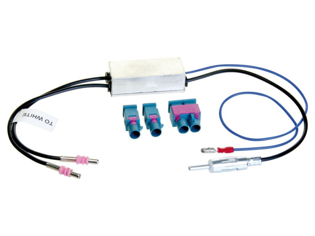 Anténní napáječ a slučovač signálu pro automobily s dvojitou anténou se zesilovačem napájeným po anténním svodu (fantomové napájení). Používá se při instalaci autorádia s jedním anténním vstupem s DIN konektorem