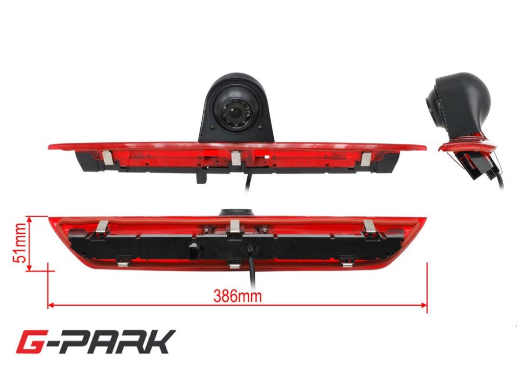 Vhodné pro automobily : | FORD Transit [V636] (2014->) - Kamera je integrována ve třetím brzdovém světle umístěném nad zadními křídlovými dveřmi, které nahrazuje kryt originálního brzdového světla. Originální brzdové světlo pod červeným krytem zůstává zachováno |