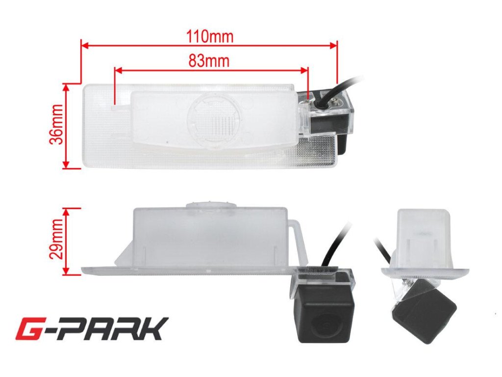 Vhodné pro automobily : | KIA Optima II. (2011->), Sportage IV. (2016->) - Kamera umožňuje zobrazení nebo skrytí trajektorií (vodících linek). Funkce je aktivována při zasunuté propojce v kabelovém svazku u kamery |