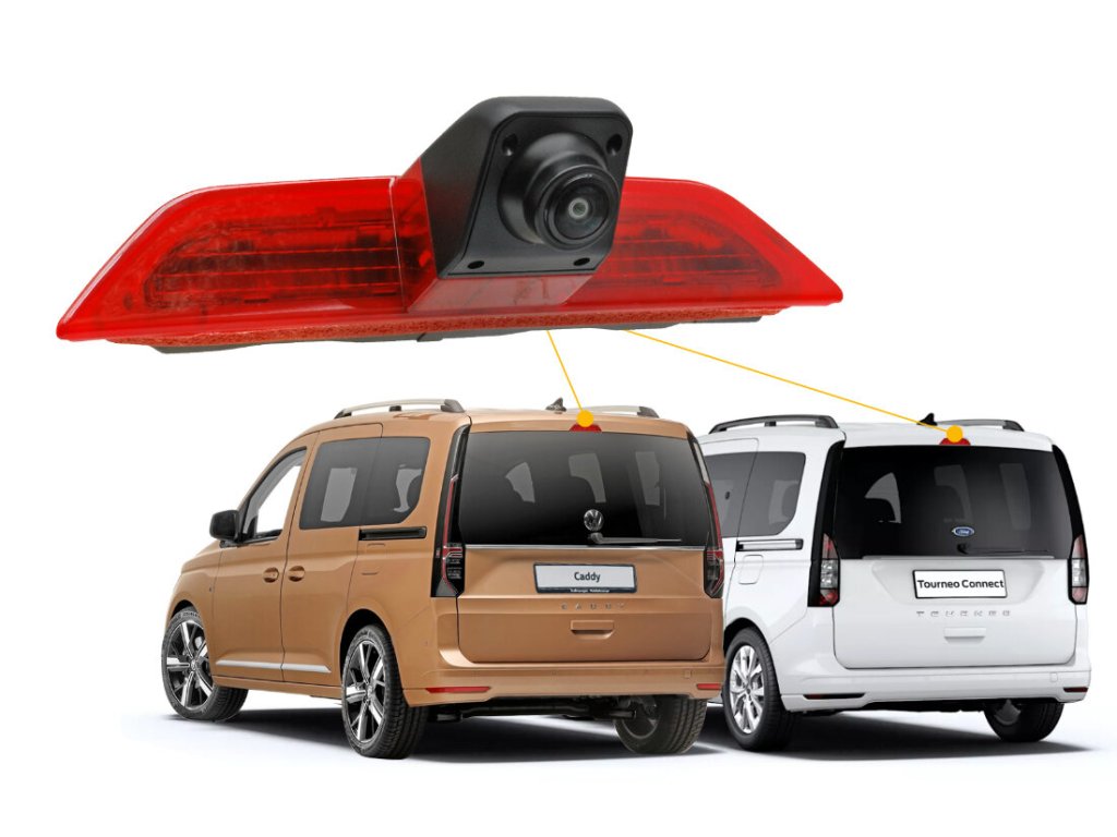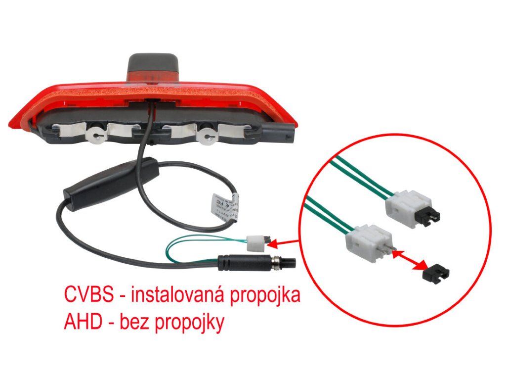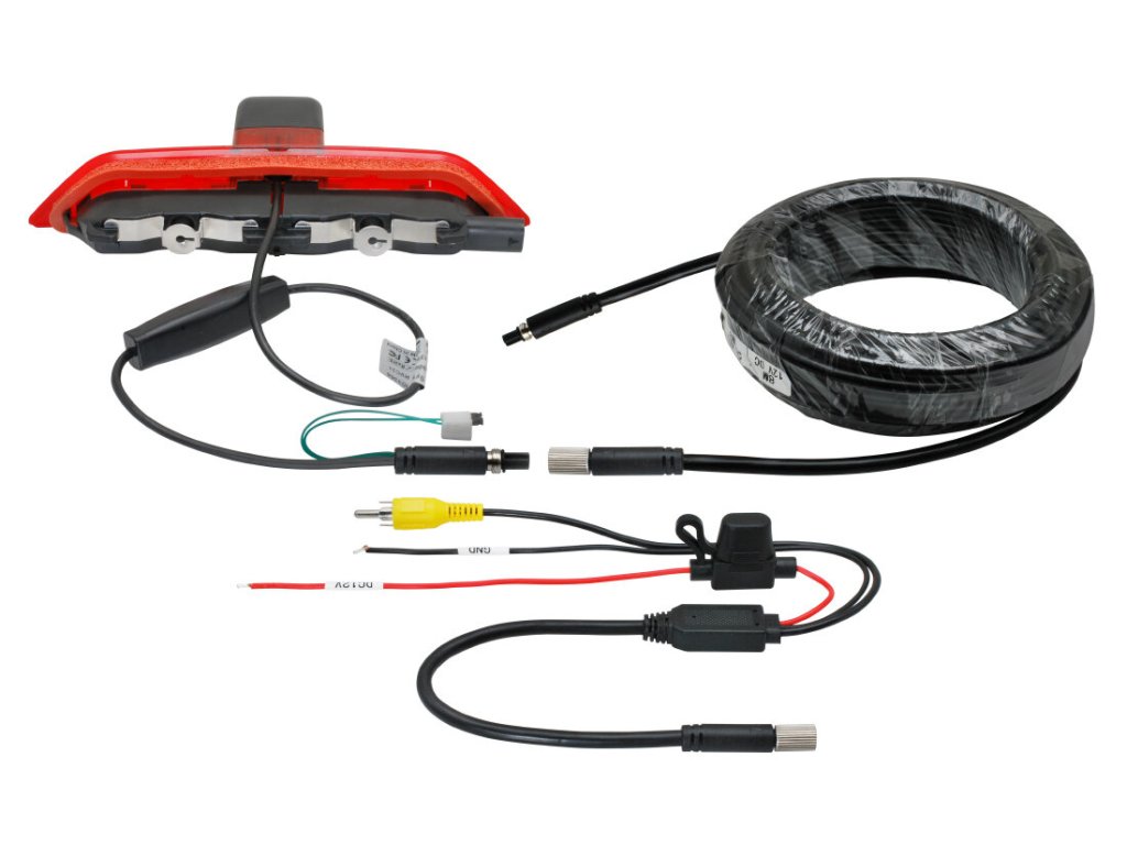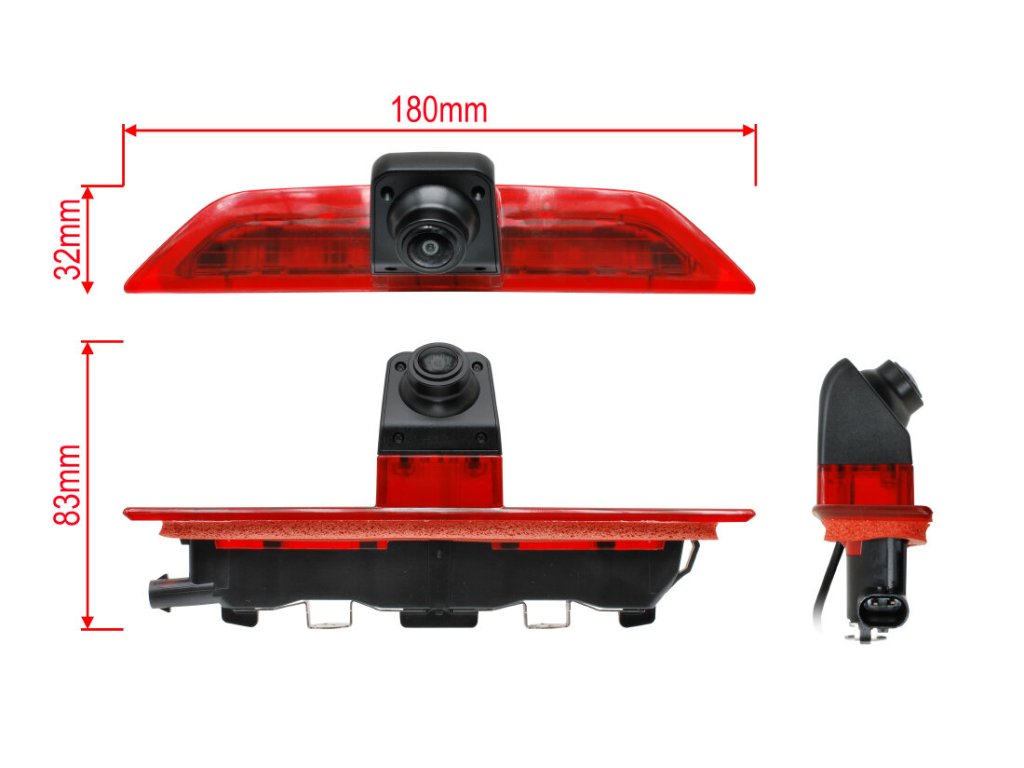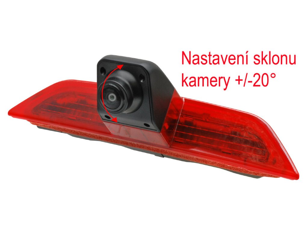 Kamera je integrována ve třetím brzdovém světle umístěném ve 3-tích výklopných nebo křídlových dveřích, které nahrazuje originální brzdové světlo. Světelná signalizace je zajištěna integrovanými LED diodami. Připojovací konektor je schodný s originálním konektorem.