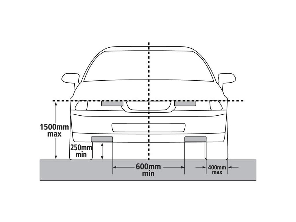 - vzdálenost světel od bočního obrysu je max. 400 mm a vzájemně mezi světly min. 600 mm (u vozidel s šířkou menší než 1300 mm je povolena vzájemná vzdálenost 400 mm)
