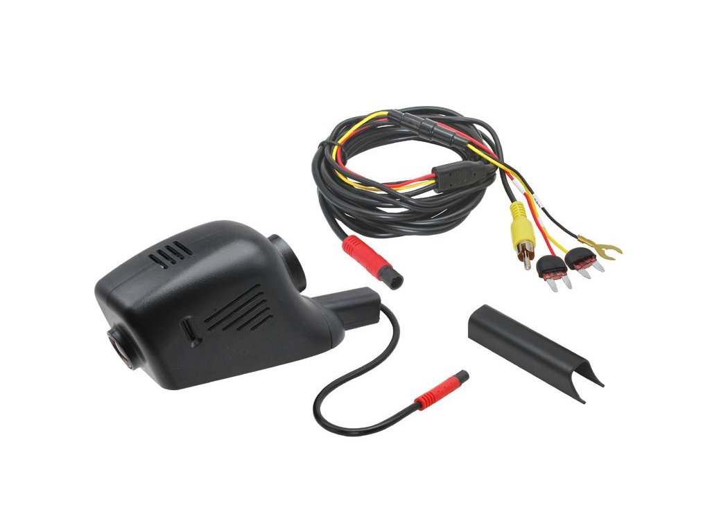 Kamera je upevněna v držáku OEM vnitřního zpětného zrcátka. Přívodní kabely jsou skryté.