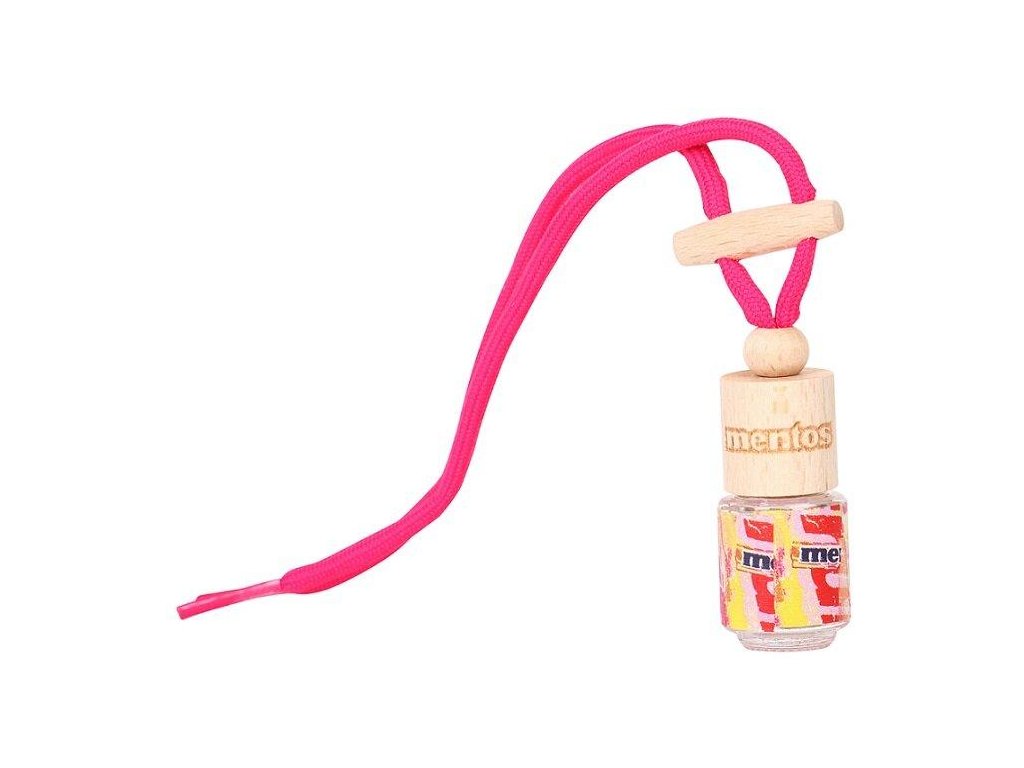 Mentos Glass Bottle Air Freshener Fruit – ovoce. Osvěžovač vzduchu ve speciálním provedení ve skleněné lahvičce s motivem bonbónů Mentos a příjemnou vůní čerstvého ovoce. Uvnitř lahvičky se skrývá 5 ml roztoku s vůní, který se zvolna uvolňuje. Šňůrka k upevnění dodává osvěžovači dokonalý vzhled a podtrhuje celkový a moderní design.
