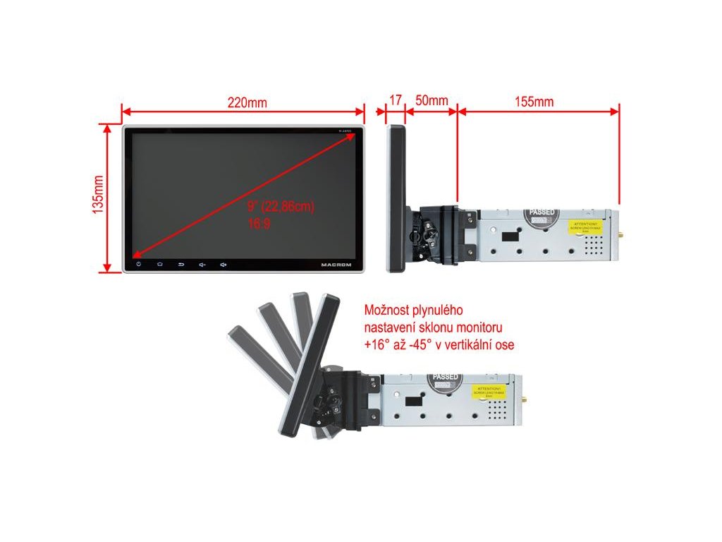| Monitor : | 9" kapacitní dotykový monitor elektricky vysunovací z těla přístroje |