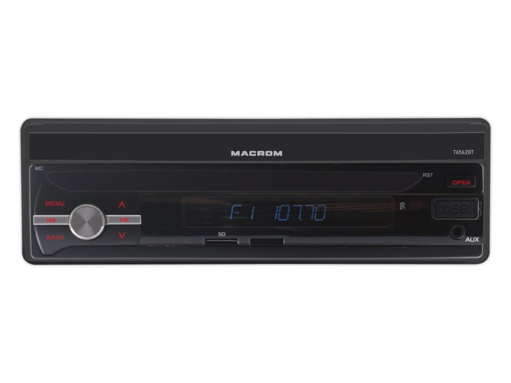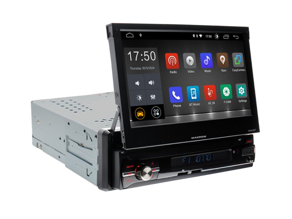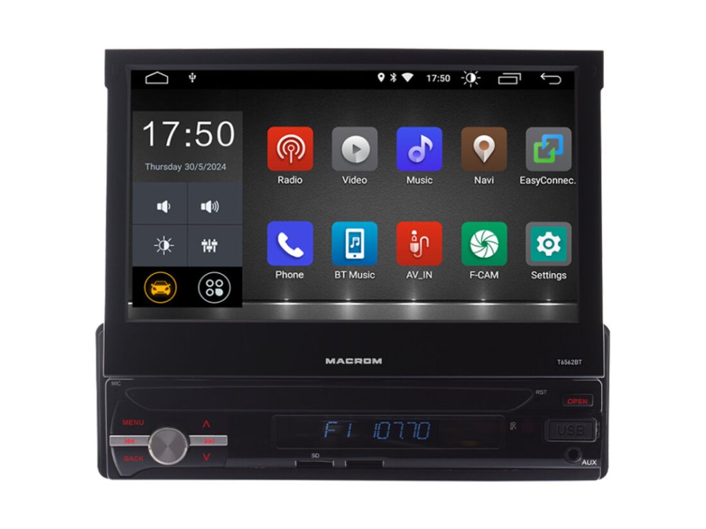 MACROM M-T6562BT je multimediální jednotka s operačním systémem Android10. 1DIN velikost a 7" kapacitní displej ve formě terý je motorově vysunováný z těla přístroje, umožňuje instalaci do řady automobilů, kam doposud nebylo možné instalovat jednotku s touto velikostí monitoru.