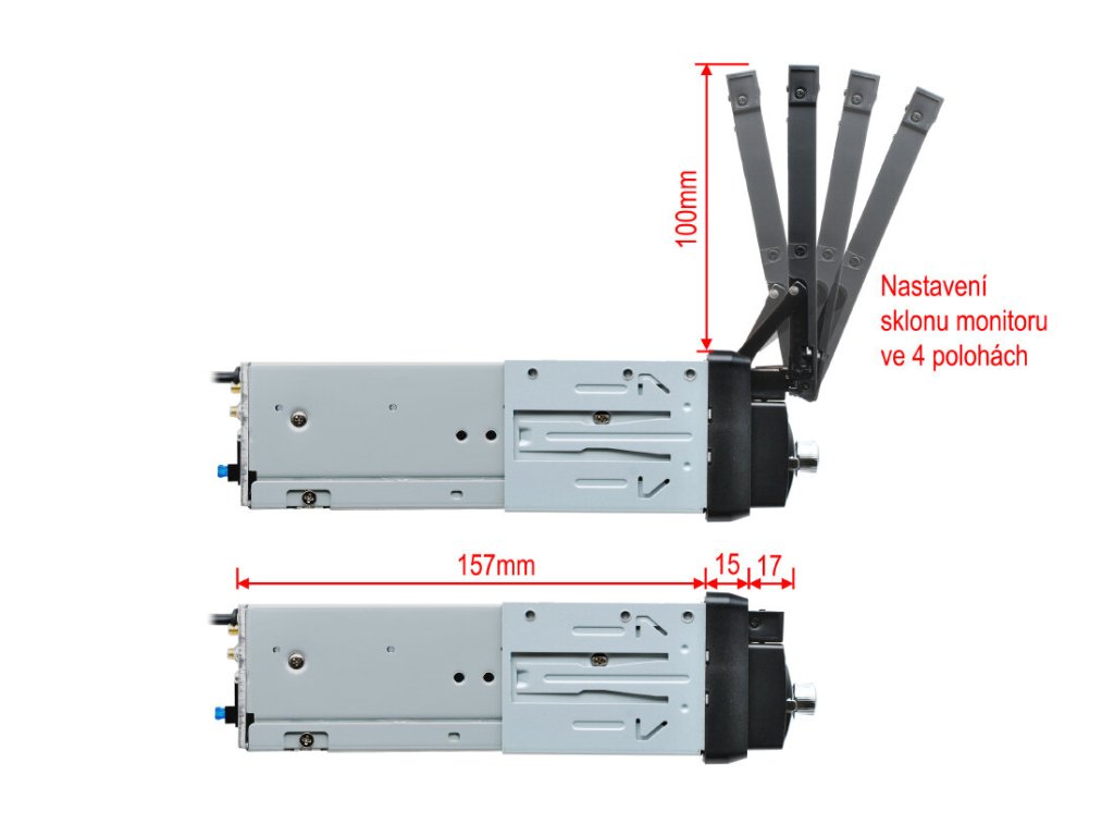 Multimediální přehrávač s 7“ kapacitním, motorově vysunovacím displejem, 1DIN tělo přístroje, operační systém Android10