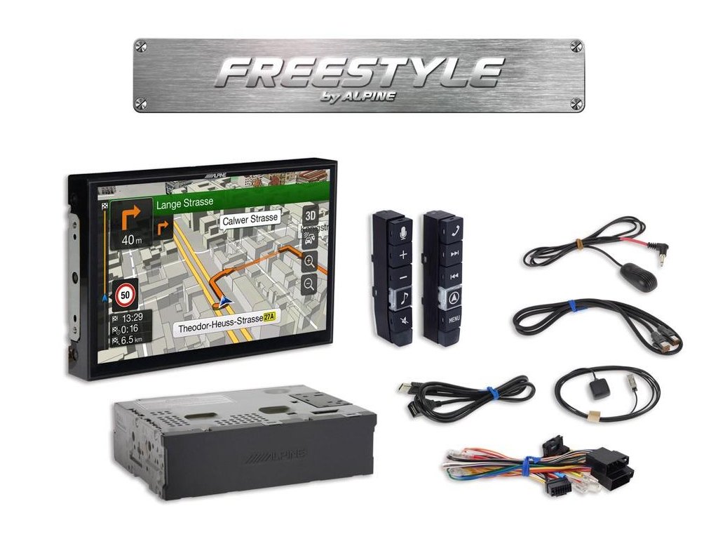S rostoucí popularitou infotainment systémů značky Alpine vzrostla také poptávka po vlastních, přizpůsobitelných řešeních pro situace, v nichž standardní instalaci nelze provést. Právě proto vznikl systém Freestyle, jenž je možné instalovat do každého vozidla. Řešení otevírá široké možnosti pro vozy bez 1DIN či 2DIN doků nebo modely zcela bez autorádií. S novými Freestyle systémy máte k dispozici buď 7“ nebo 9“ obrazovku, stejně jako pokročilou navigaci iGo Primo NextGen, DAB+ a řadu dalších multimediálních možností. Oba produkty Freestyle jsou kompletní řešení – zahrnují dotykovou obrazovku s vysokým rozlišením, plně přizpůsobitelné tlačítkové panely, přijímač médií, GPS/Glonass anténu, veškerou kabeláž včetně USB kabelů a rámeček Golf 6. Máte tak k dispozici všechny části, které budete potřebovat pro vlastní instalaci navigačního/multimediálního systému.