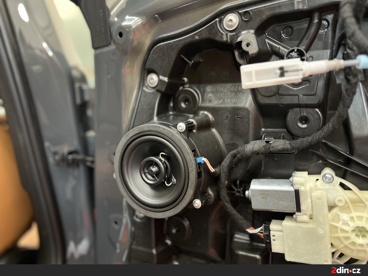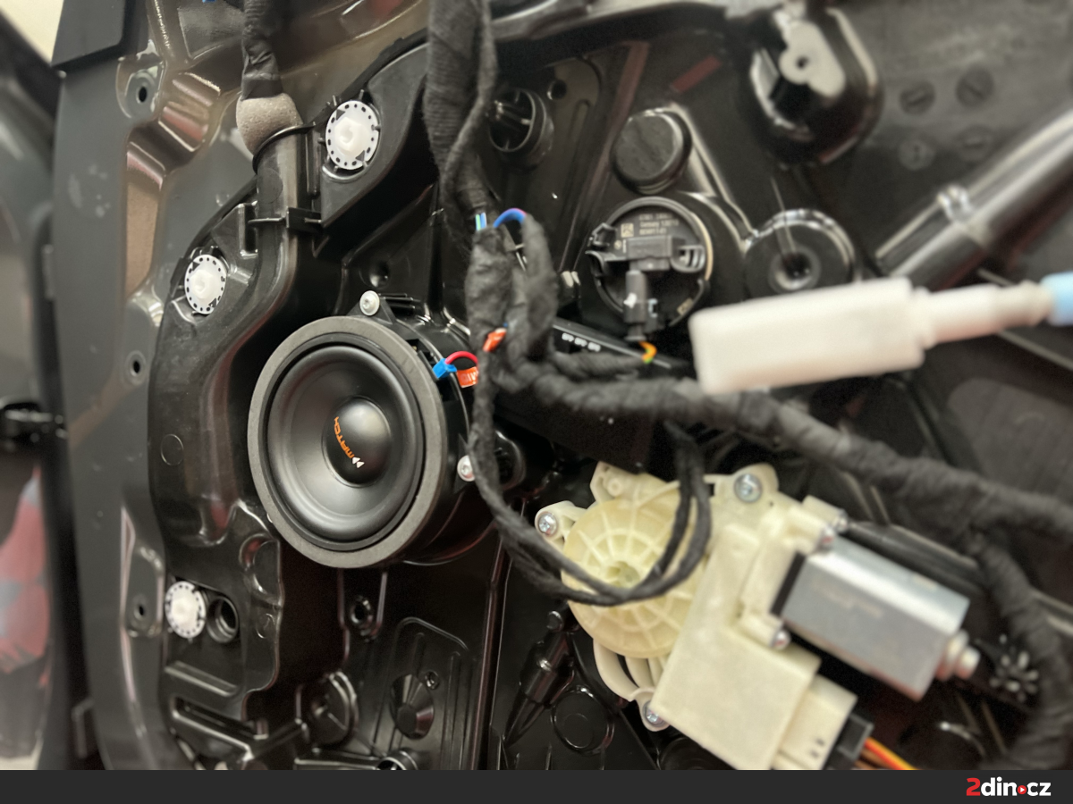 Pro přední část vozu jsme zvolili sadu komponentních reproduktorů Match UP C42BMW-FRT.2, které díky preciznímu zpracování a přímé kompatibilitě s vozem BMW poskytují špičkový výkon a maximální přirozenost zvuku. Zadní dveře byly osazeny modelem Match UP X4BMW-FRT.2, což zajistilo dokonalé ozvučení celého interiéru. Tyto reproduktory poskytují vysoký akustický výkon, skvělou dynamiku a díky systému plug & play i snadnou instalaci bez zásahů do elektroinstalace.