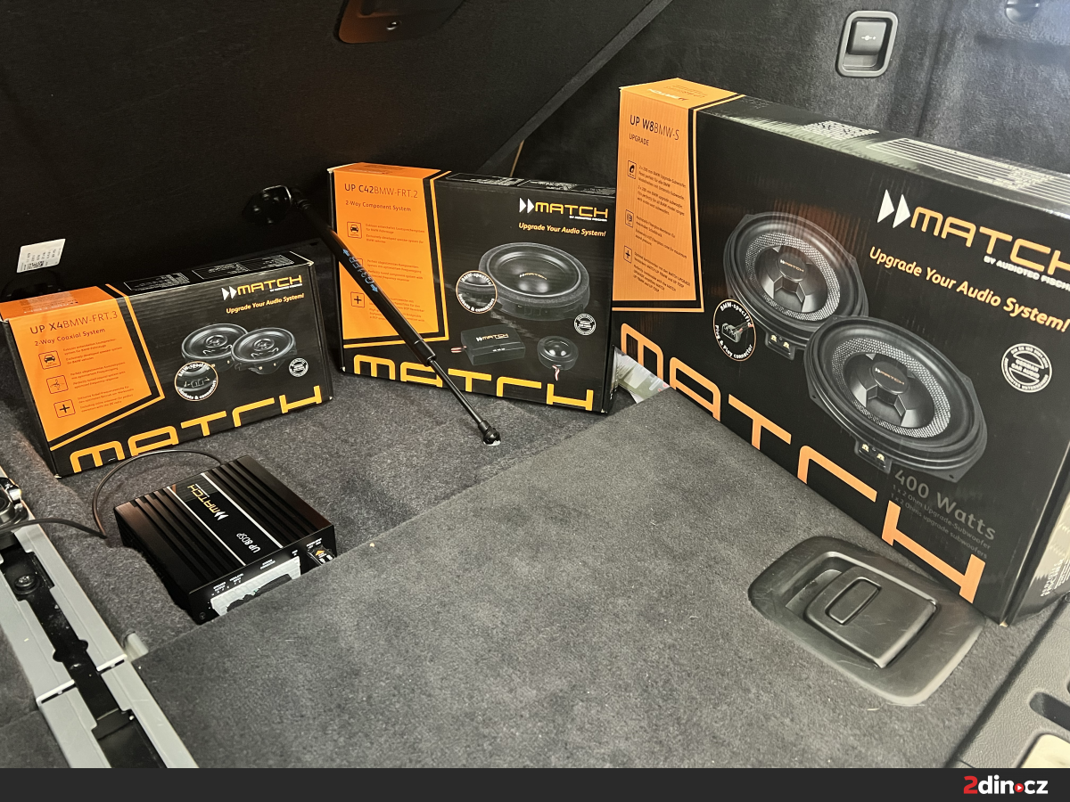 Pro přední a zadní dveře jsme zvolili speciální modely Match UP C42BMW-FRT.2 a Match UP X4BMW-FRT.3, které byly navrženy výrobcem přímo pro montáž do vozů BMW, aniž by to vyžadovalo jakékoli zásadní úpravy. Značka Match mimochodem spadá do portfolia Audiotec Fischer a v 2din.cz nedáme na její výrobky dopustit. Nové reproduktory vynikají věrnou reprodukcí zvuku, širokou frekvenční odezvou a vysokou citlivostí. Díky tomu je zvuk čistý, dynamický a plný detailů napříč celým spektrem, od jemných výšek po přesné středy. Kompaktní rozměry a plug & play systém umožňují rychlou montáž bez nutnosti zásahu do elektroinstalace či interiéru vozu.