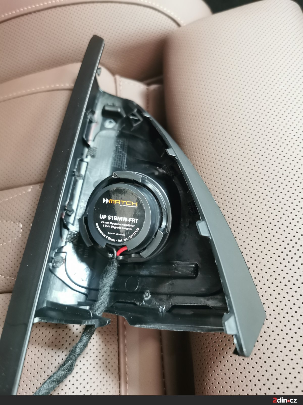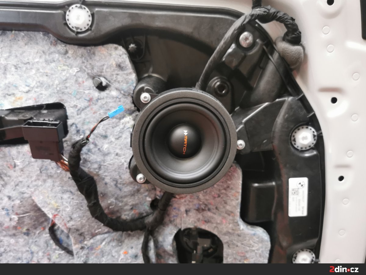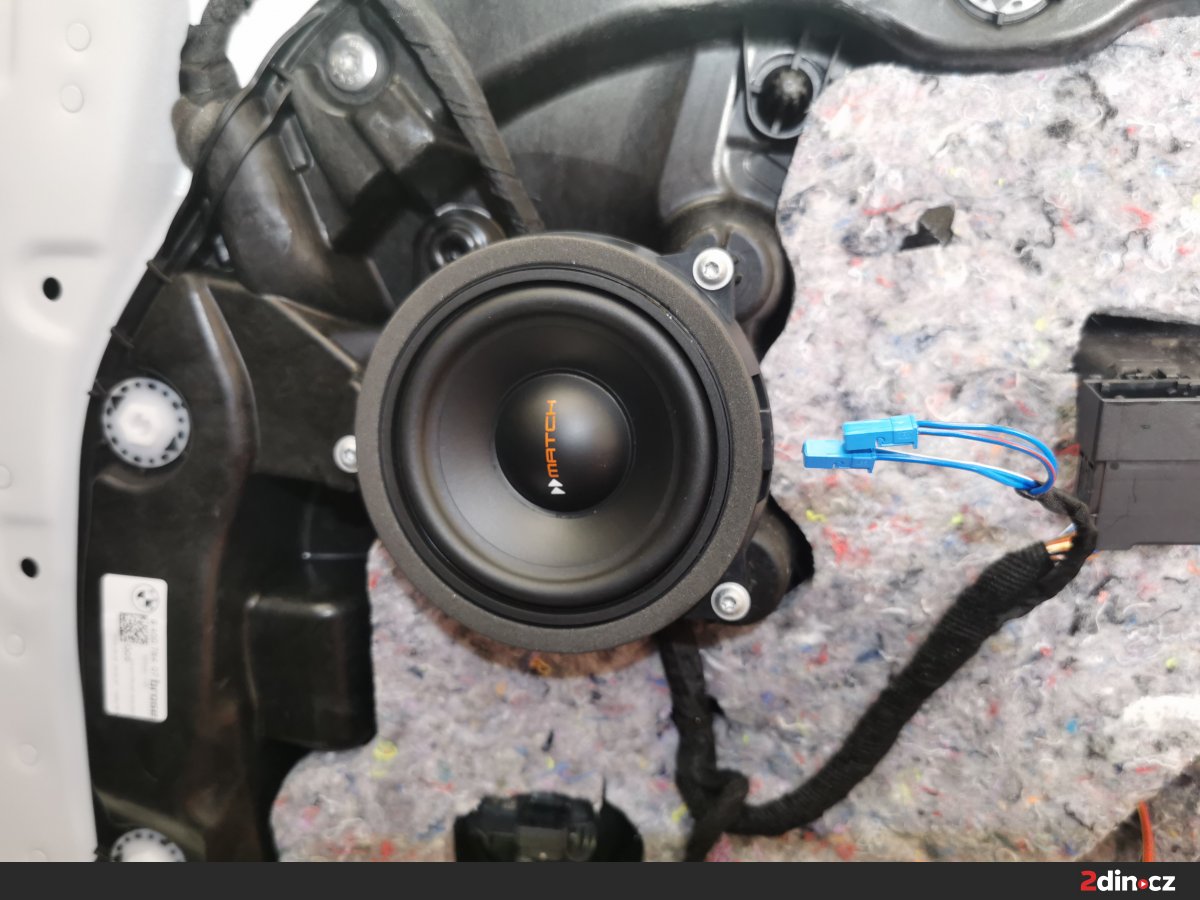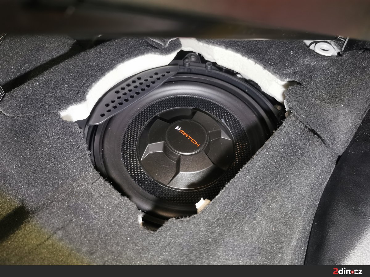 Basy v továrním systému HiFi 676 působily mdle a bez dynamiky. V tomto voze jsme proto pod přední sedadla nainstalovali dvojici subwooferů Match UP W8BMW-S. Tento pár precizně zapadá do originálních pozic v podlaze vozu a díky kvalitnímu ladění ve spojení s DSP zesilovačem dosahuje výrazného zlepšení v hloubce i kontrole basové složky. Subwoofery dokonale přesně a při správném naladění dodávají zvuku požadovanou hutnost i bez zbytečného nepřijemného dunění.
