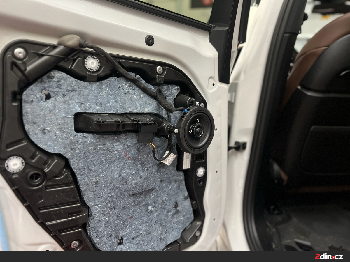 Byť jsme v tomto případě odhlučnění vozidla neprováděli, sluší se zmínit, že takovýto krok dává smysl za všech okolností. V interiéru BMW X5 G05 sice už z výroby najdeme ucházející zvukovou izolaci, ale pokud bychom jej mohli kompletně odhlučnit pomocí našich osvědčených materiálů a metod, výsledná zvuková scéna by byla oproštěna od rušivých vnějších vlivů a výkon nové sestavy ještě lepší. Mimo jiné by ve dveřích vznikla kvalitní ozvučnice pro reproduktory. Zákazník si však odhlučnění nepřál, a tak jsme se soustředili především na zlepšení samotné kvality zvuku.