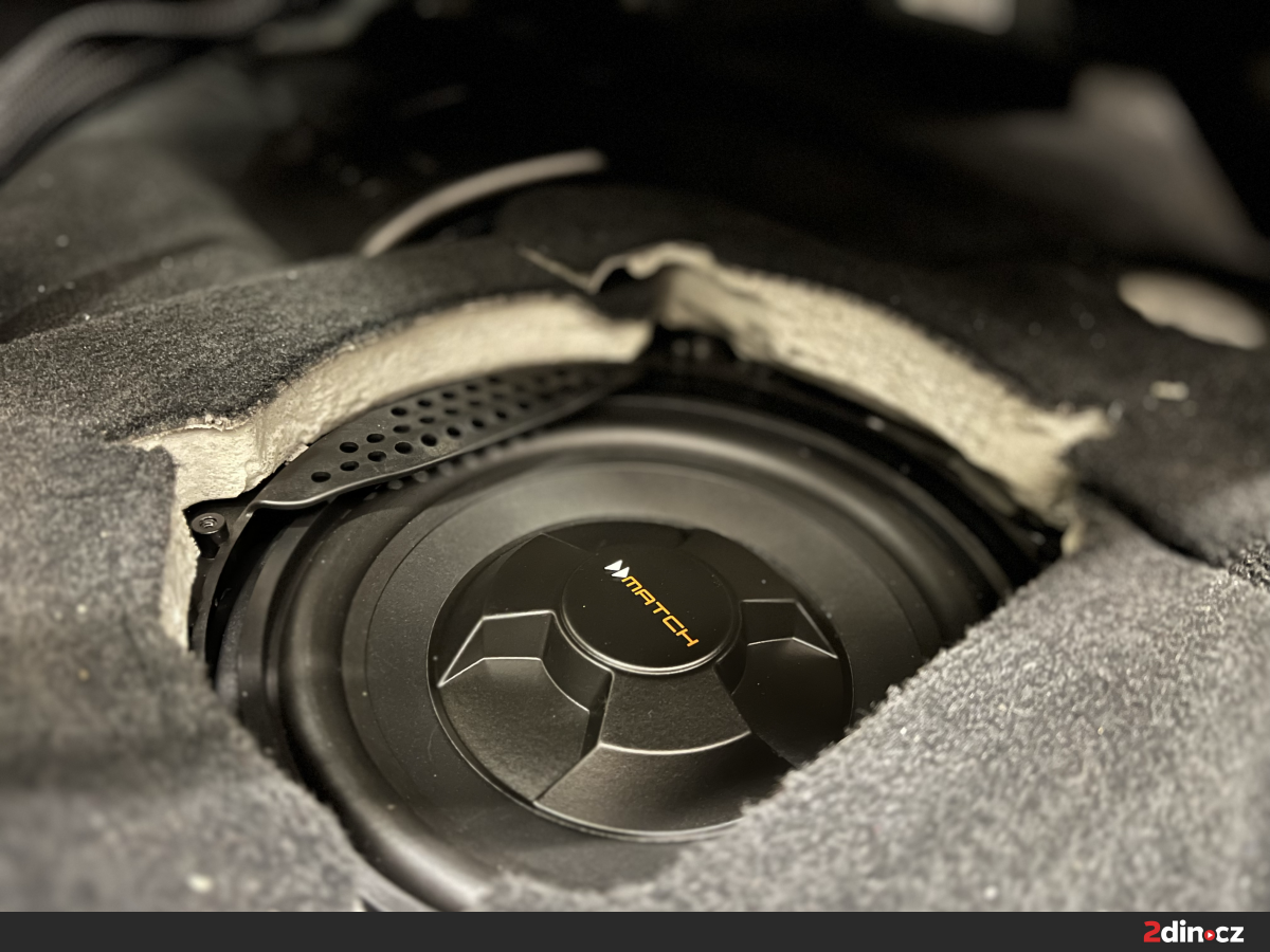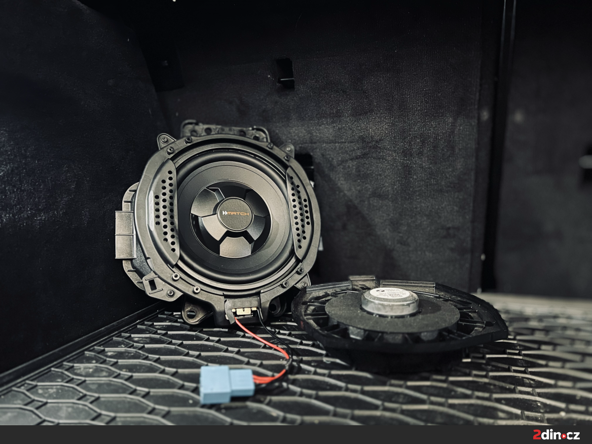 Rozhodli jsme se jít cestou našeho balíčku ozvučení Premium Pro, který zahrnoval výměnu předních a zadních reproduktorů, přidání dvojice subwooferů a integraci kvalitního zesilovače s DSP procesorem, který nám umožnil vyladit celou soustavu k dokonalosti. Komponenty jedné z našich nejoblíbenějších značek Match, která spadá do portfolia německé firmy Audiotec Fischer, pozvedly kvalitu ozvučení auta na neskutečnou úroveň!
