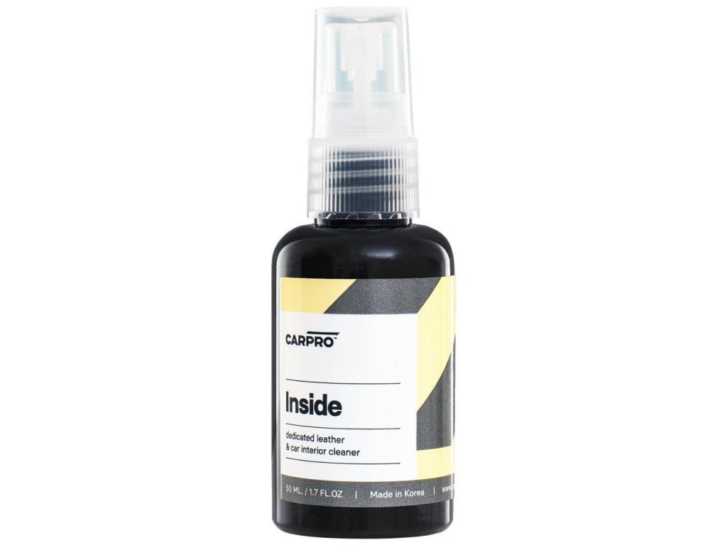 CarPro Inside je perfektní čistič všech interiérových povrchů ve vašem voze. Dokáže zajistit čištění na profesionální úrovni. CarPro Inside byl speciálně vyvinut pro čištění jak přírodní, tak i umělé kůže, lze jej použít i na dřevo, plast a další materiály. CarPro Inside pro čištění využívá vysoce pěnící směs jemných detergentů a tenzidů, které dokážou snadno a efektivně odstranit nejen mastnotu a pot, ale i další typy znečištění. CarPro Inside za sebou nezanechává rezidua, čištěný povrch má dokonale přirozený vzhled. Kromě toho, že ošetřený povrch zbaví nečistot, dokáže jej zbavit i zápachu.