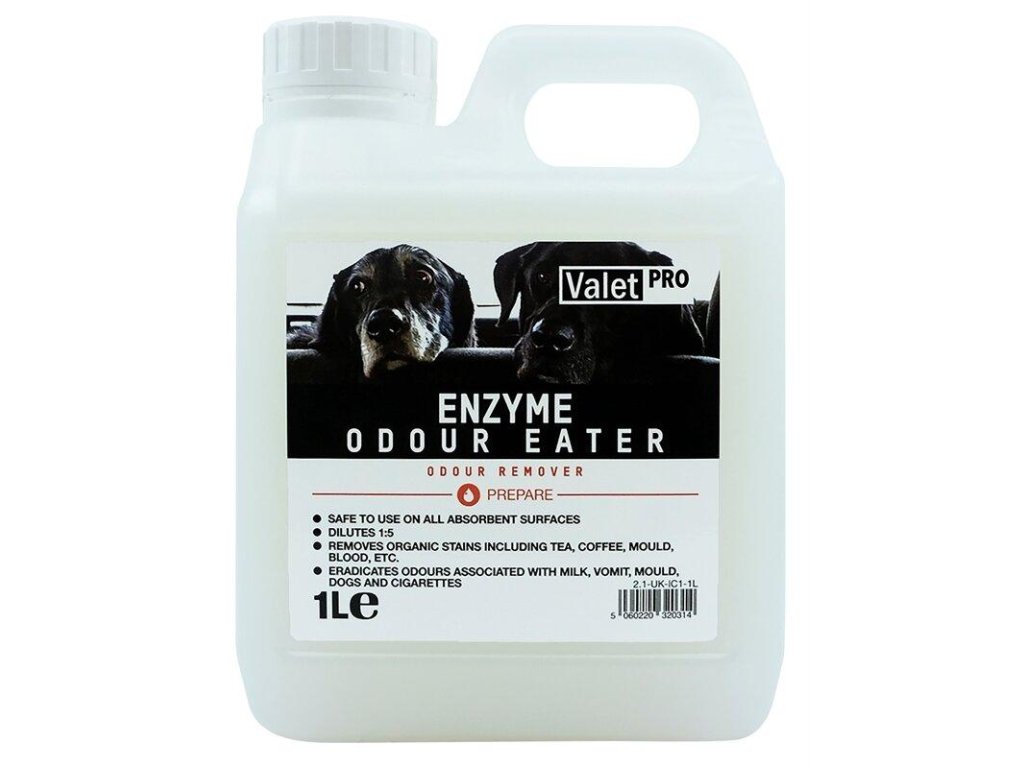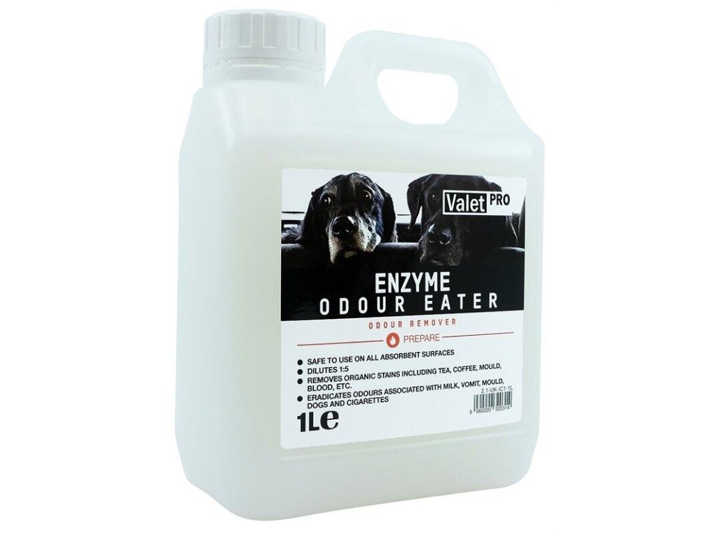 ValetPro Enzyme Odour Eater je účinný pohlcovač pachů na bázi enzymů. Poradí si s nepříjemným zápachem z mléka, zvratků nebo moči. Stačí jej nastříkat na postiženou oblast. ValetPro Enzyme Odour Eater v sobě obsahuje prospěšné bakterie, které produkují enzymy a ty likvidují škodlivé bakterie způsobující zápach. ValetPro Enzyme Odour Eater odstraní i organické skvrny například od čaje, krve nebo vody.