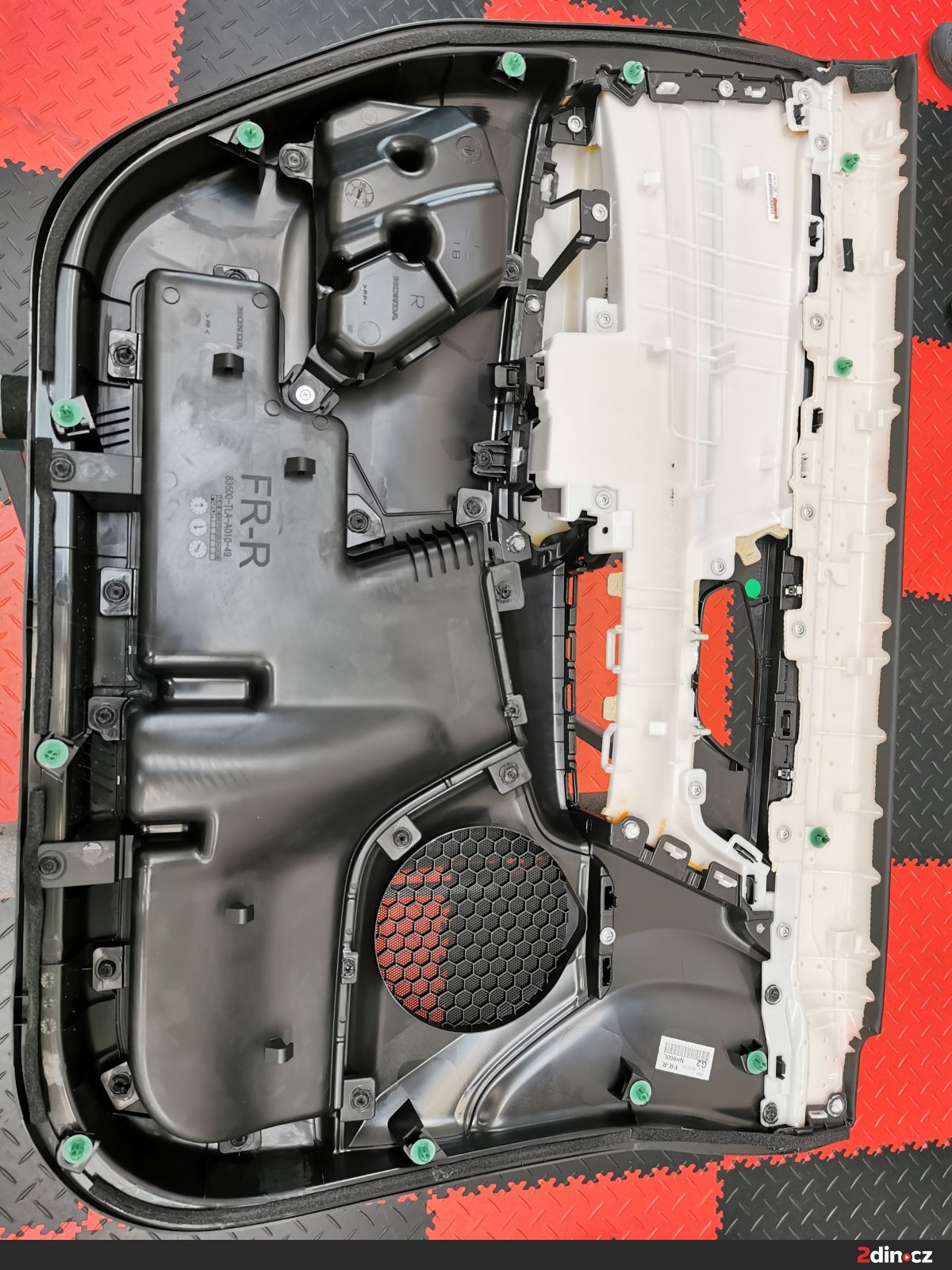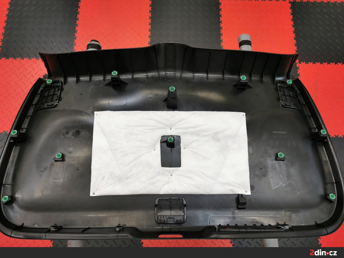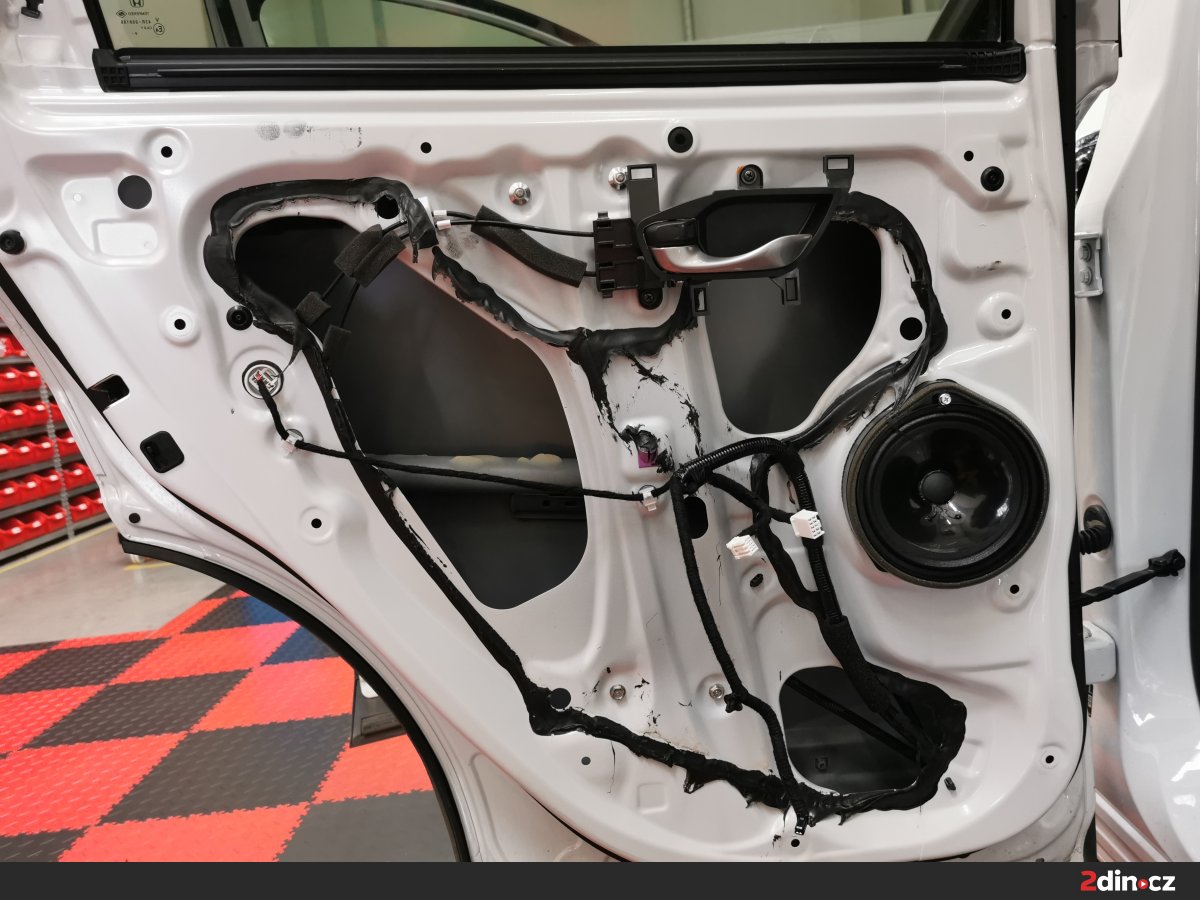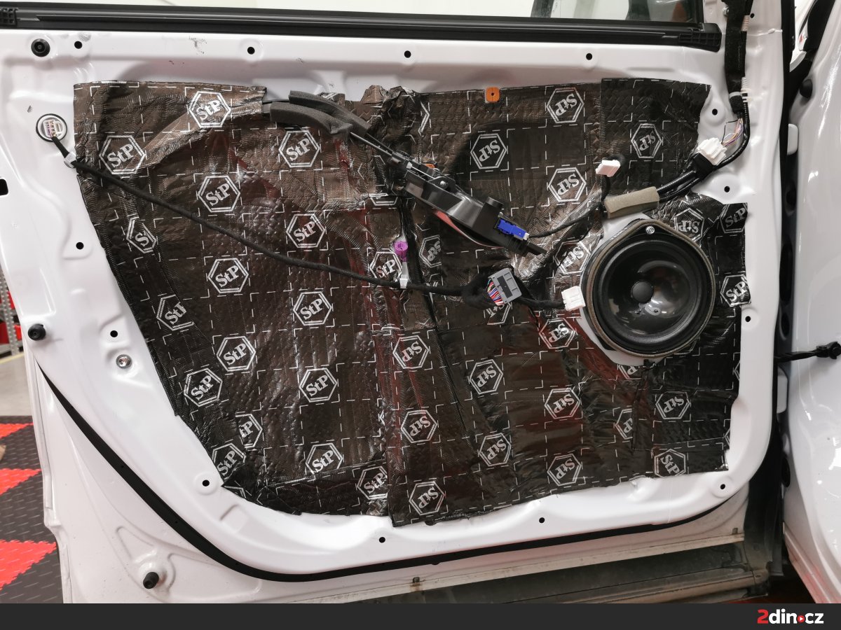 Dveře této Hondy byly z výroby odhlučněny jen minimálně, což se projevovalo jak přenosem hluku z okolí, tak i rezonancemi při vyšších rychlostech nebo při zavírání. Prvním krokem bylo zpevnění plechů pomocí antivibračního materiálu STP Black Silver, který eliminuje rezonance a zpevňuje konstrukci. Na něj byla aplikována vrstva akustického materiálu STP Biplast 10, jež tlumí vysokofrekvenční hluk a eliminuje pazvuky z plastových částí. Výsledkem této kombinace je nejen znatelné snížení hlučnosti, ale i výrazné zlepšení funkčnosti audiosystému – reproduktory nyní hrají čistěji díky lepší ozvučnici. Navíc došlo ke kompletnímu potlačení vrzání a vibrací, čímž se výrazně zvýšila celková kvalita prostředí interiéru.