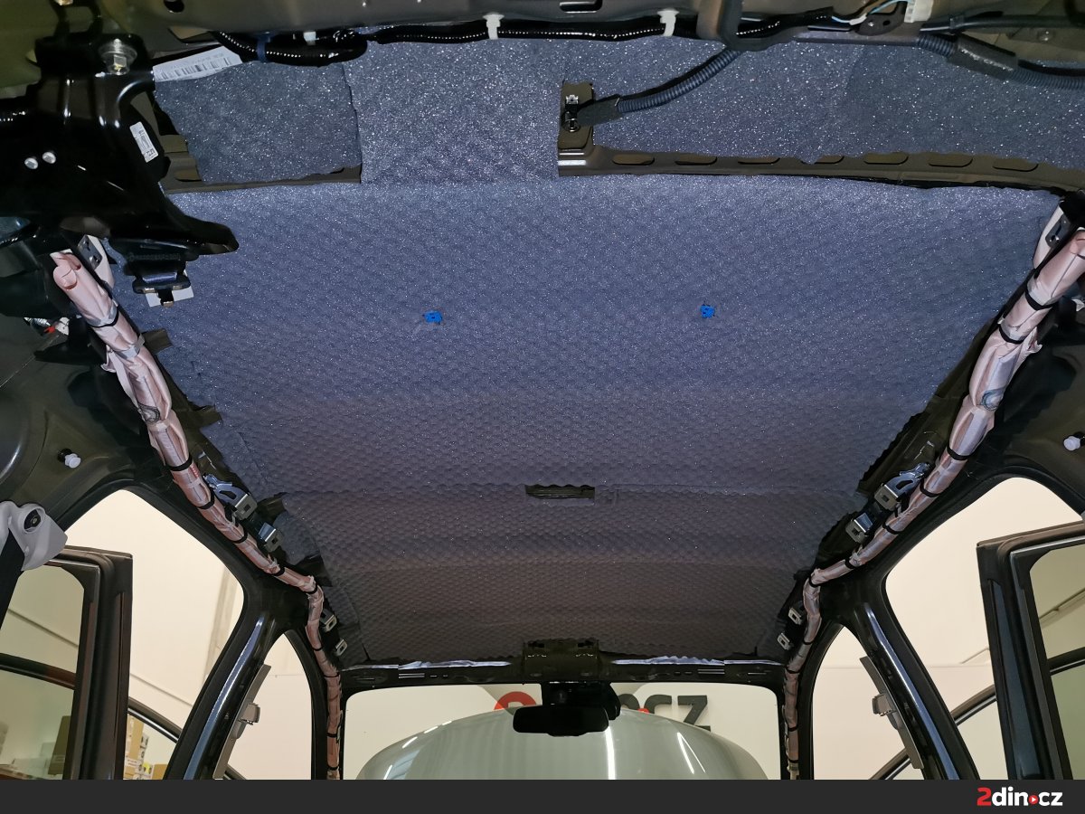 Strop této Hondy CRV je jednou z největších volných ploch, náchylnou k rezonancím a aerodynamickému hluku. Proto zde byla použita antivibrační vrstva STP Black Silver, která plech zpevnila a odstranila rezonance. Následně byl aplikován termoakustický materiál STP AeroFlex 10, který funguje jako efektivní bariéra proti hluku zvenčí a zároveň zlepšuje tepelnou izolaci – zejména v létě a zimě. Tato úprava významně přispěla k celkovému ztišení kabiny.