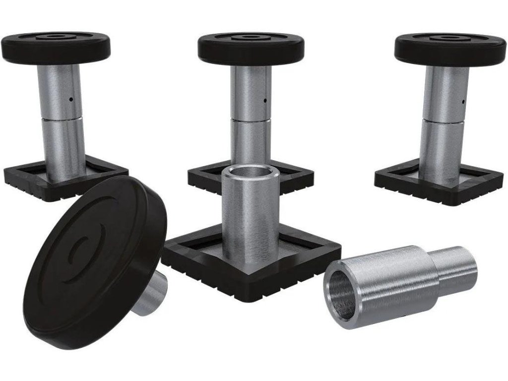 - 4x posuvné přijímače, které obsahují kulaté polyuretanové kontaktní podložky a/nebo stohovatelné adaptéry