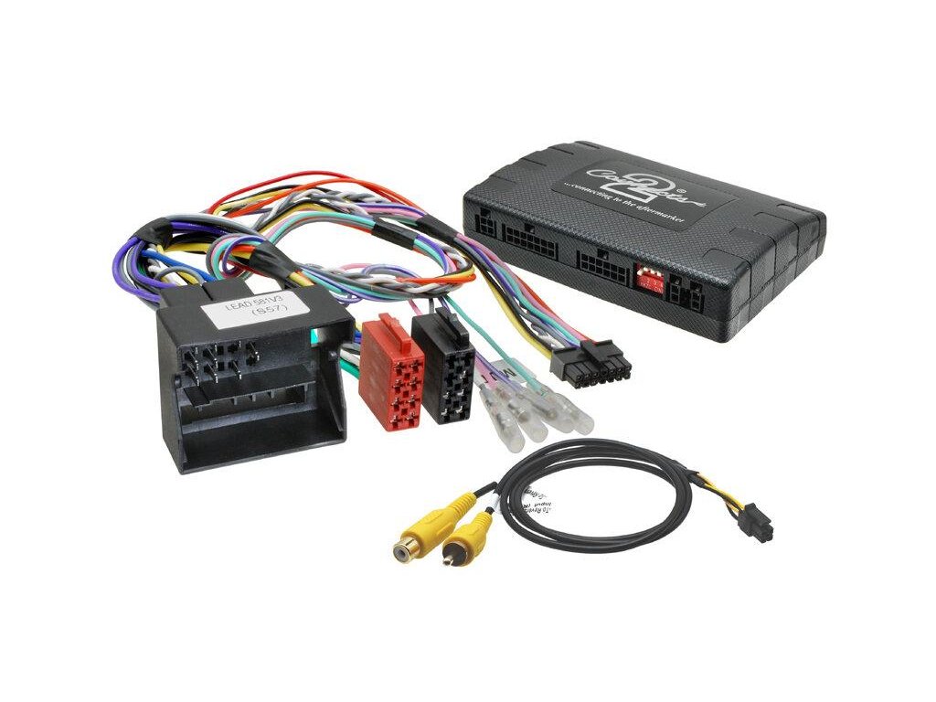 Informační adaptér pro zobrazení informací o vozidle na monitoru dodatečně instalované AV jednotky, ovládání na volantu a připojení parkovací kamery.