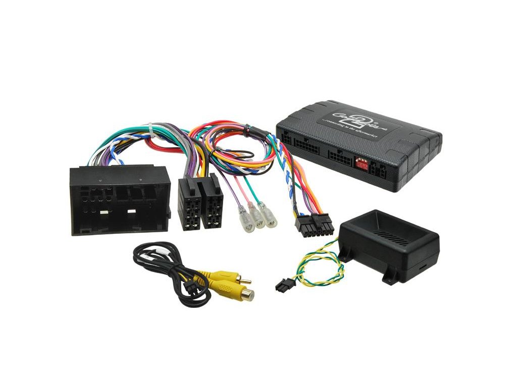 Informační adaptér pro zobrazení informací o vozidle na monitoru dodatečně instalované AV jednotky, ovládání na volantu a připojení parkovací kamery.