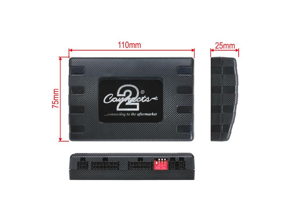 Infodapter umožňuje zobrazení následujících informací na displaji dodatečně instalované AV jednotky : | - nastavení klimatizace, ventilace, vyhřívání sedadel... - zobrazení vzdálenosti od překážky OEM parkovacích snímačů (přední i zadní) - připojení zadní parkovací kamery - ovládání navigace pomocí ovladačů na volantu - připojení AV jednotky s ISO konektorem - pro aftermarket autorádia nebo navigace Sony, Kenwood, Panasonic, JVC, Pioneer, Blaupunkt, Clarion, Alpine, LG, Zenec, Becker, Nakamichi, Philips * |