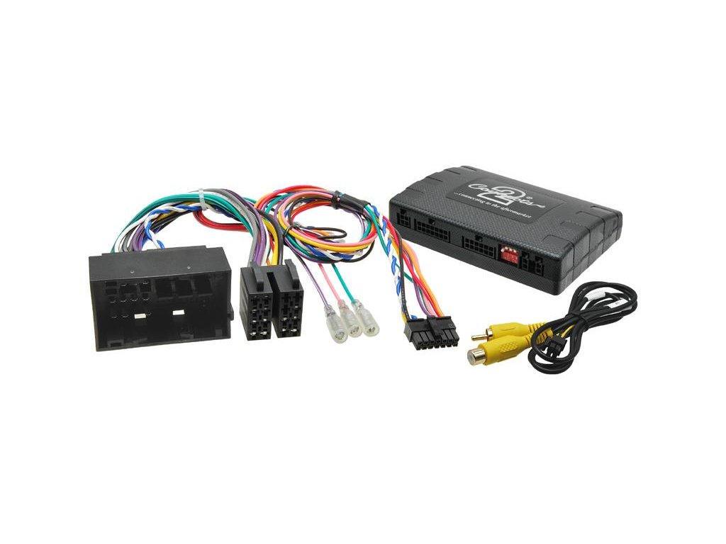 Informační adaptér pro zobrazení informací o vozidle na monitoru dodatečně instalované AV jednotky, ovládání na volantu a připojení parkovací kamery.