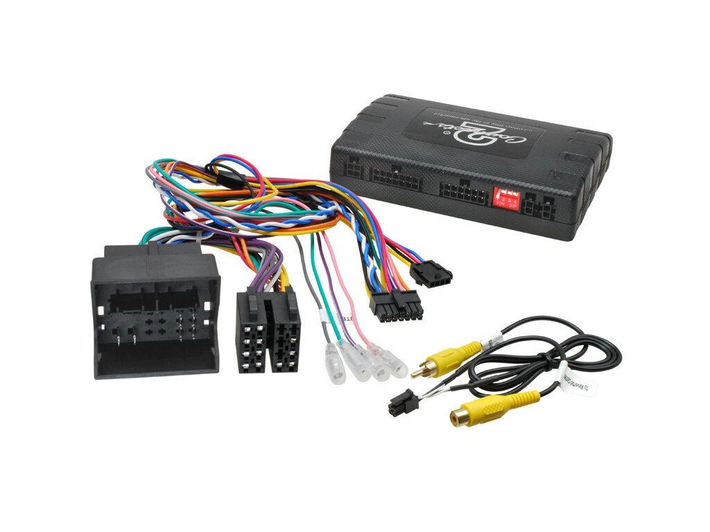 Informační adaptér pro zobrazení informací o vozidle na monitoru dodatečně instalované AV jednotky, ovládání na volantu a připojení parkovací kamery.