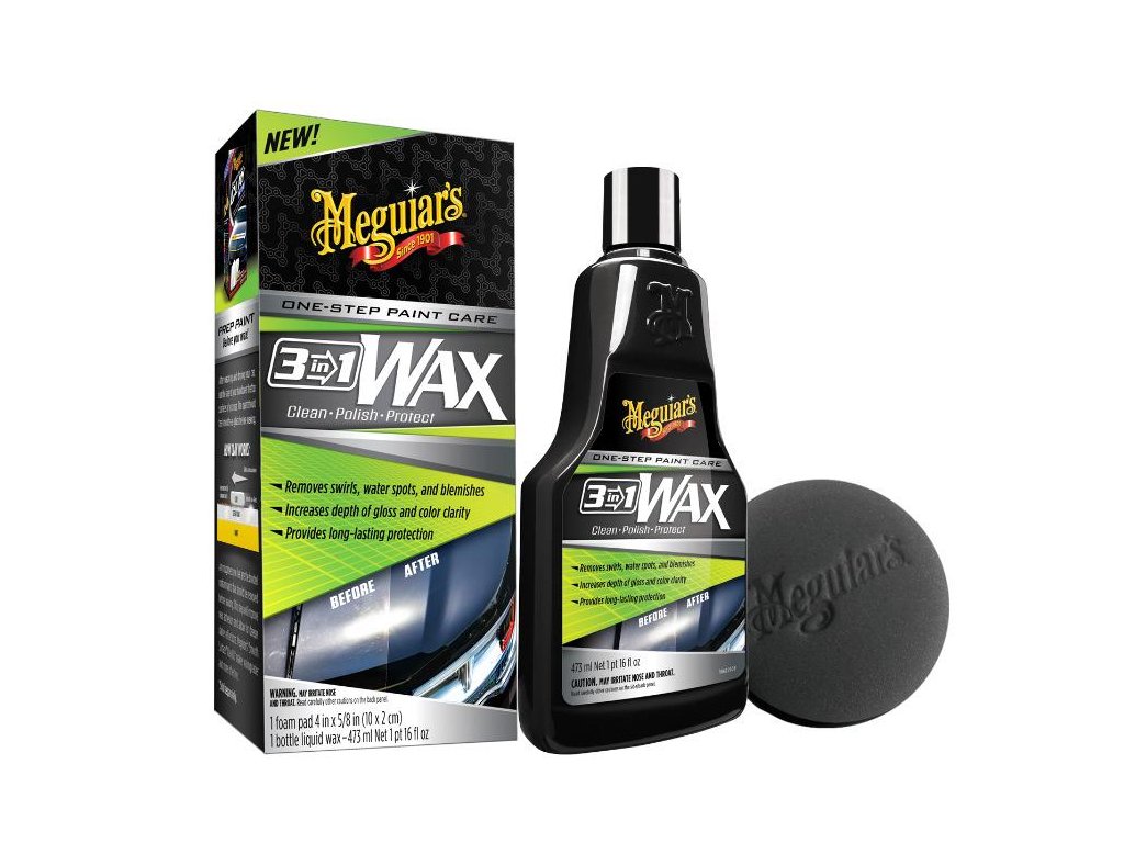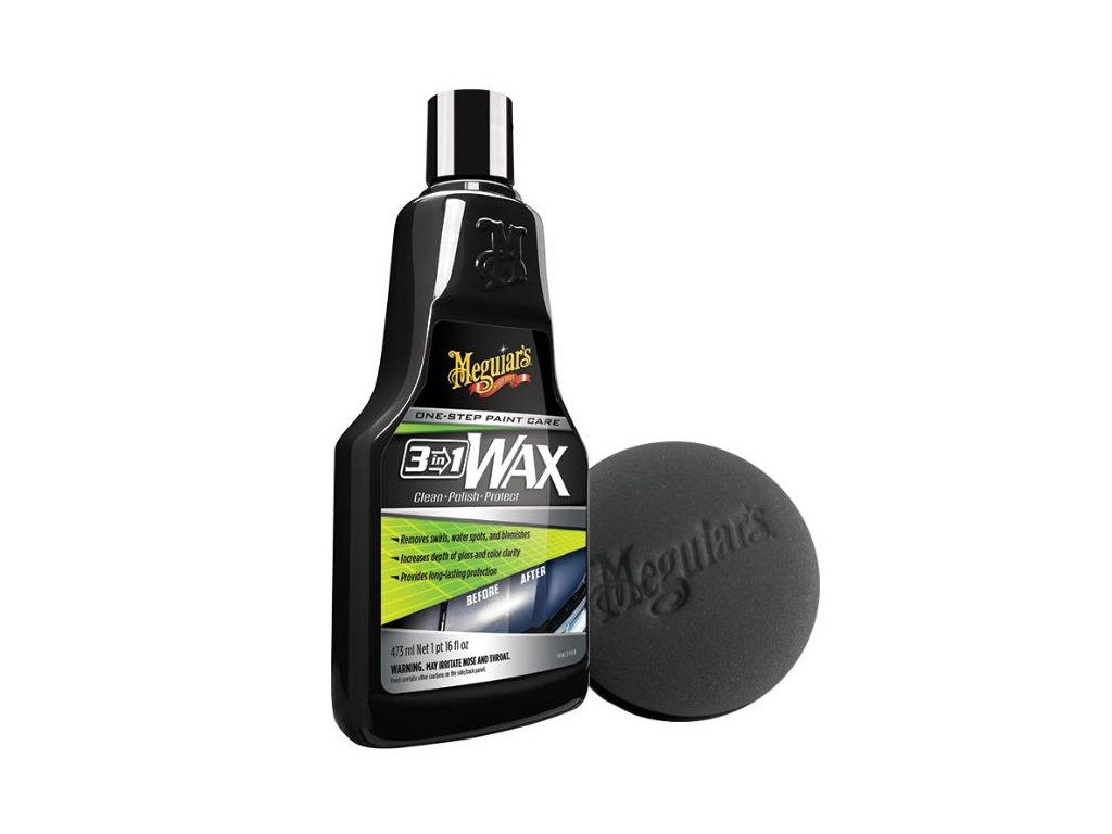 V dnešní uspěchané době chceme mít vše co nejrychleji a přitom dokonale udělané. Ne všichni mají tolik volného času a chuť, půl dne leštit své milované auto. S přípravkem 3-in-1 Wax bude lak vašeho auta zbaven defektů, dodá mu dokonalý lesk a poskytne dokonalou ochrannou vrstvu. Korekce + leštění + ochrana! Tyto všechny vlastnosti v sobě nese 3-in-1 Wax. Pokud provádíte údržbu pravidelně, tak vám 3-in-1 Wax poskytne ty nejlepší výsledky. Rychlost, spolehlivost, nepřekonatelný lesk a stoprocentní ochrana. Přípravek odstraňuje jemné až střední poškození. Díky obsahu leštících olejů bude lak vašeho auta výjimečně zářit a dlouhotrvající ochrana bude chránit povrch před UV zářením, deštěm a dalšími nežádoucími vlivy. Obsahuje přírodní karnaubský vosk a syntetické vosky. Mikroabrazivní složení, bez mrknutí oka odstraní kruhové škrábance, vodní skvrny, oxidaci a ostatní. Disponuje skvělými hydrofobními vlastnostmi, to zaručuje dlouhodobou ochranu před usazováním vody a ochranu před dalšími nepříznivými vlivy. Přípravek byl vyroben pro ruční nanášení, je však možné použít také leštící nástavec a vrtačku Meguiar's DA Power Systém nebo orbitální leštičku Meguiar´s MT310.