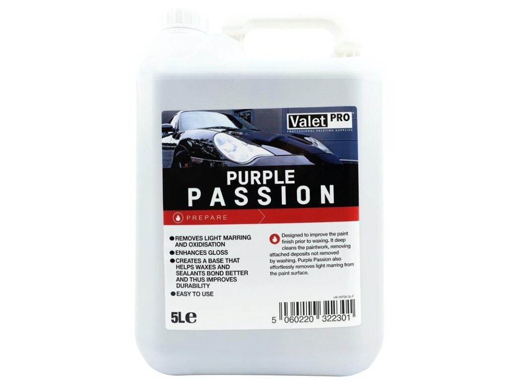 Valetpro Purple Passion je snadno aplikovatelný prostředek na laky, se kterým bez větší námahy odstraníte jemné poškození na povrchu. Jemně abrazivní leštěnka za sebou zanechává vysoce lesklý povrch. Valetpro Purple Passion vytváří perfektní základ pro různé typy vosku. Ideální poměr mezi cenou a kvalitou.
