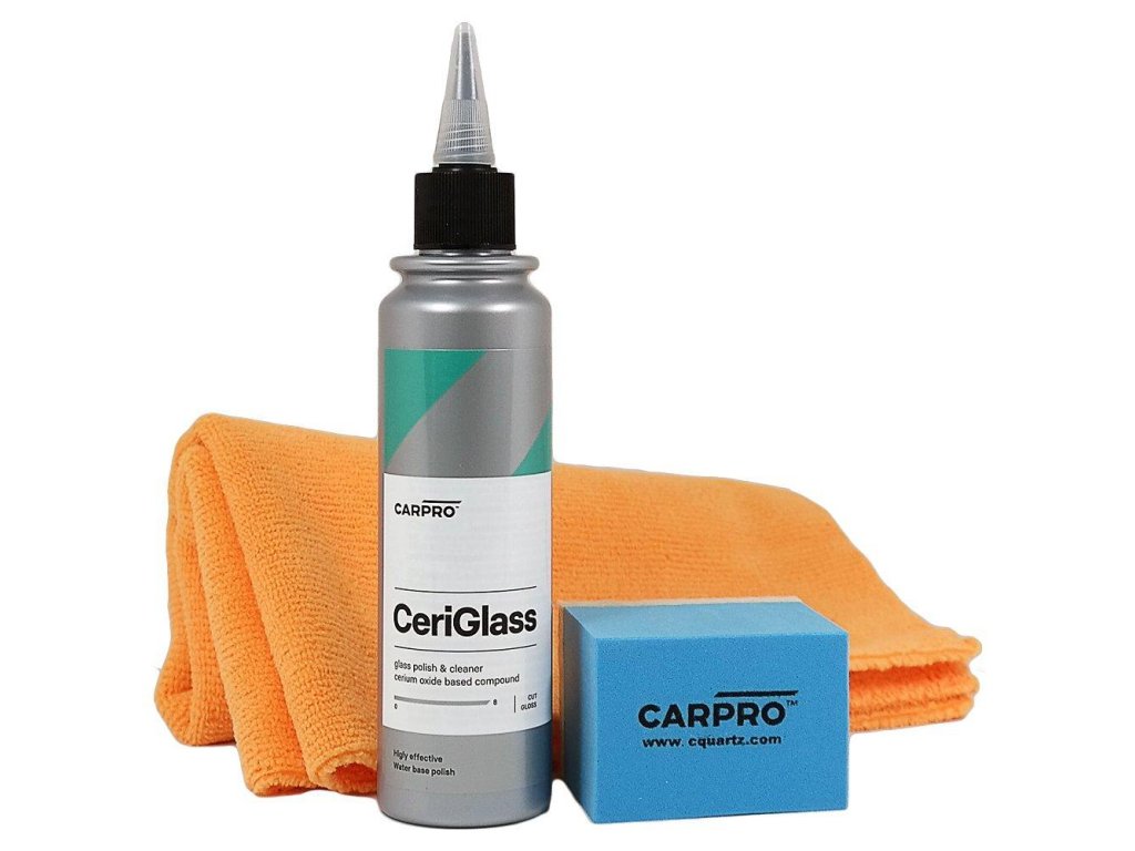 CarPro Ceriglass 150 ml – sada čisticí pasty na sklo, aplikační houbičky a mikrovláknové utěrky