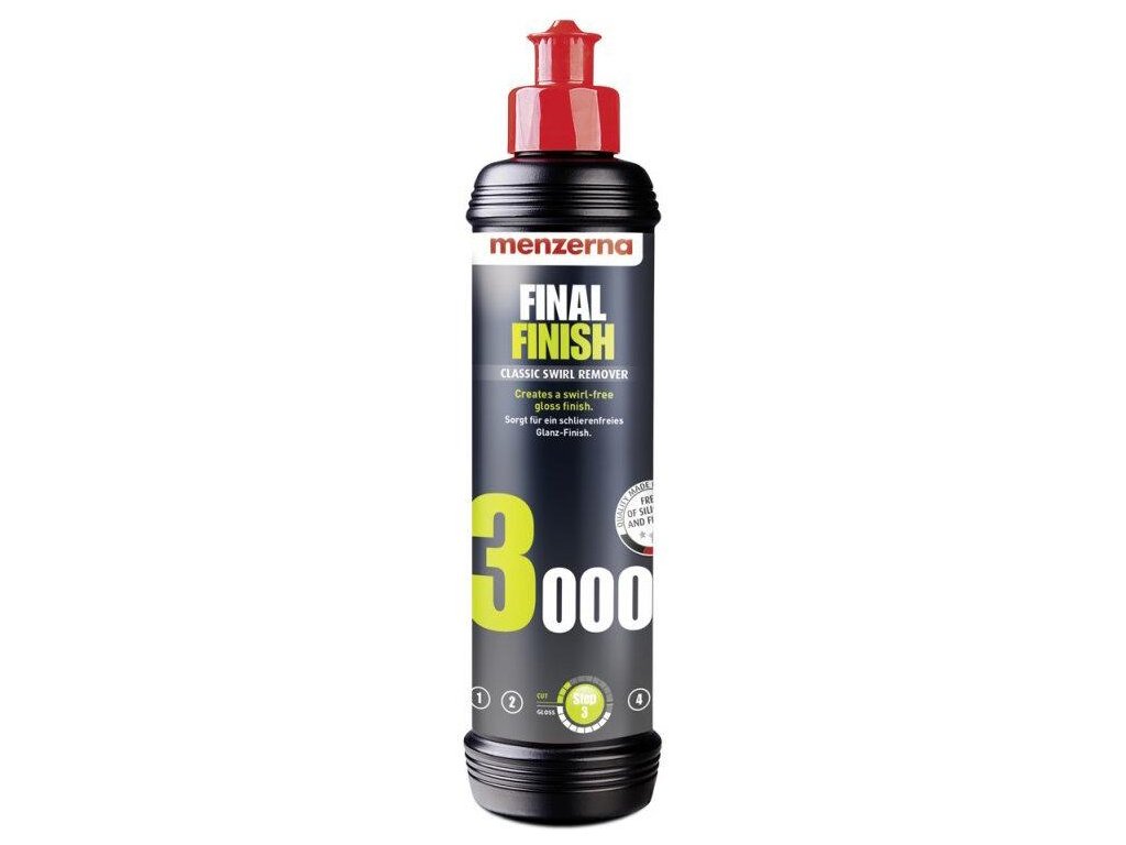 Menzerna Final Finish 3000 250 ml. Finišující leštící pasta určená pro práci s rotační nebo orbitální leštičkou ale také ručně.