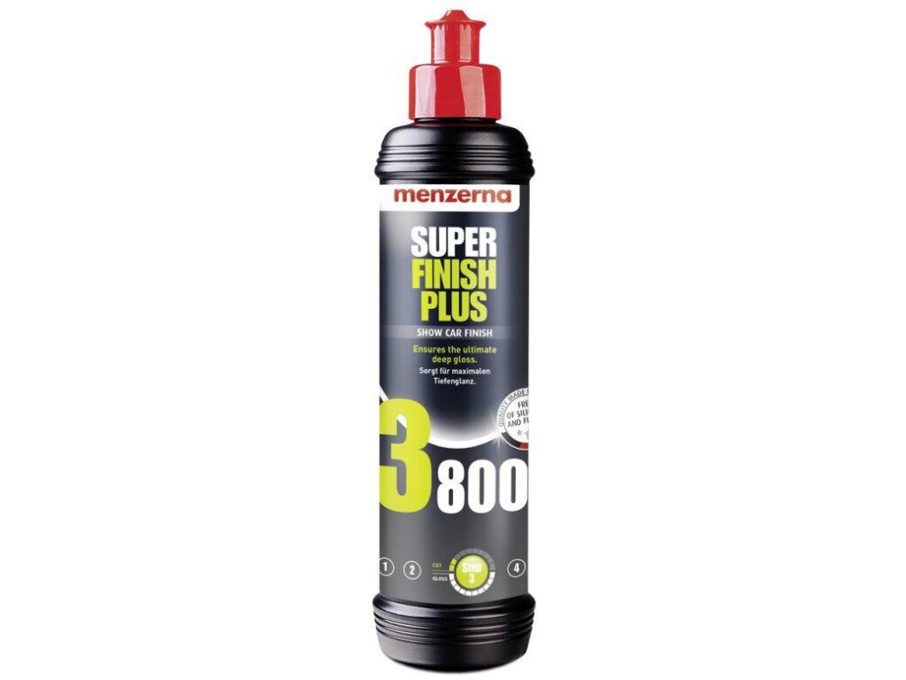 Menzerna Super Finish Plus 3800 250 ml. Leštící finišující pasta určená ke strojnímu i ručnímu leštění tvrdých laků.