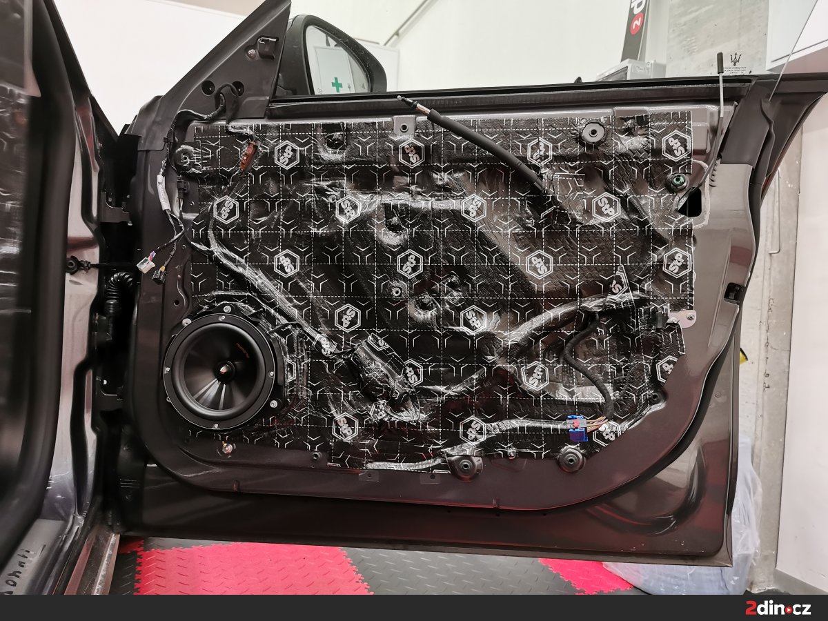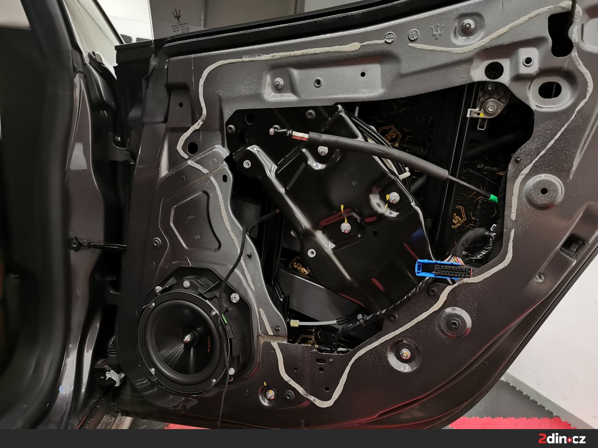 Tento prémiový krasavec značky Maserati dorazil k nám na dílnu s cílem vylepšit zvukový zážitek při zachování decentního vzhledu interiéru a bez nutnosti rozsáhlých úprav. Tovární ozvučení nedokázalo nabídnout dostatečnou čistotu a dynamiku, což je u vozů této třídy často překvapivé. Zákazník zvolil balíček ozvučení Starter, který platí za efektivní a cenově dostupné vylepšení audia vozu. Instalace zahrnovala výměnu všech reproduktorů a kompletní odhlučnění dveří – jak předních, tak i zadních. Cílem bylo dosáhnout výrazně lepší srozumitelnosti, detailnosti a čistoty zvuku, a to i při běžném poslechu.