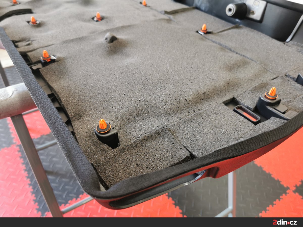 Odhlučnění kufru probíhalo stejným způsobem jako u podlahy. Kombinace STP Black Gold Camo s vrchní vrstvou Neoprene 3 vytvořila účinný blok proti šíření hluku od kol, silnice i podvozkových částí auta. Vzhledem k tomu, že se jedná o prostor s přímým propojením do kabiny, bylo důležité zajistit maximální možnou zvukovou izolaci. Výsledek přinesl znatelné zlepšení, zejména při naložení vozu a při jízdě po nerovnostech.