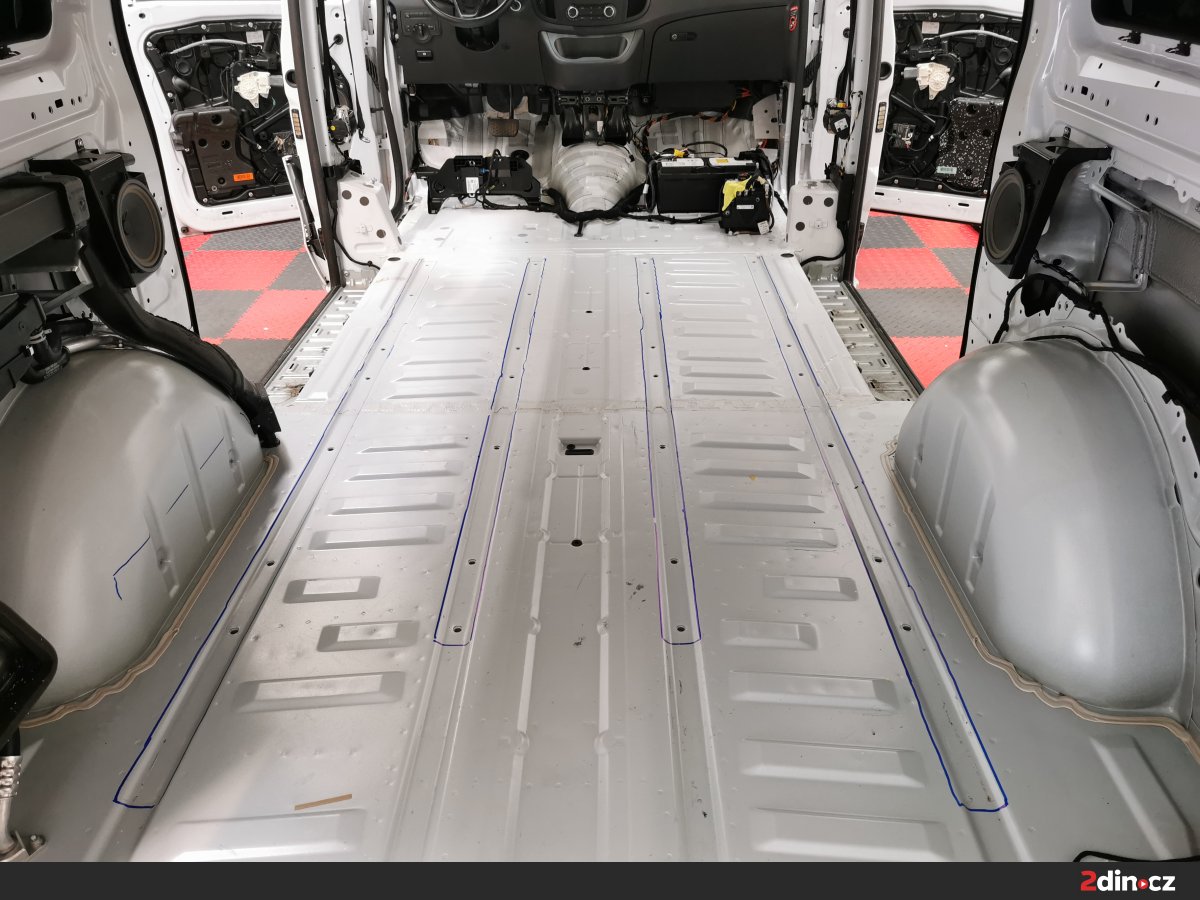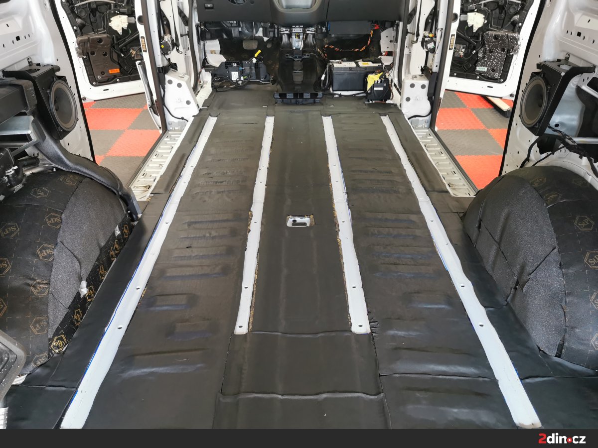 Podlaha byla odhlučněna dvouvrstvě s důrazem na co nejvyšší účinnost a zachování původních krycích dílů. Na kovový základ byla aplikována silná vrstva STP Black Gold Camo, která minimalizuje přenos vibrací od podvozku, výfuku a valivého hluku od pneumatik. Následně byl použit akustický materiál STP Biplast 10, který zajišťuje jak zvukovou, tak částečně tepelnou izolaci. Tato kombinace přináší znatelné ztišení kabiny i při vyšších rychlostech a po nekvalitních površích, kdy se podlaha jinak chová jako přenašeč nežádoucího hluku. Celkově se zde dosáhlo velmi výrazného zlepšení.