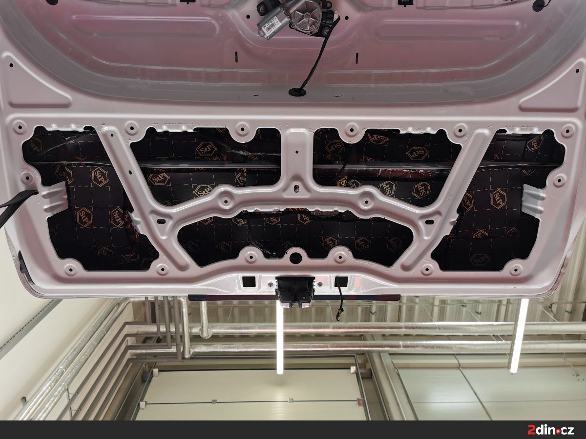 Zadní víko je oblast, na kterou často výrobci zcela zapomínají. U Mercedesu Vito to není výjimkou, a proto jsme jej odhlučnili stejným způsobem jako dveře – tedy kombinací antivibračního materiálu STP Black Silver pro zpevnění a STP Biplast 10 pro potlačení zbytkových frekvencí. Tím jsme předešli jak hluku od zadních pneumatik, tak i vibracím, které vznikají při manipulaci s víkem. Výrazně se tím zvýšila akustická celistvost zadní části vozu, a zároveň byla připravena lepší základna pro případné budoucí úpravy v oblasti audiosystému.