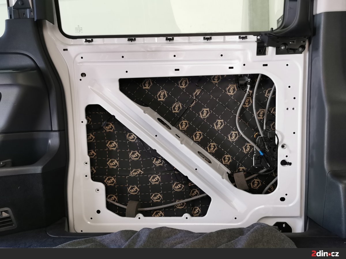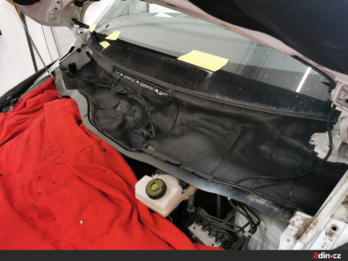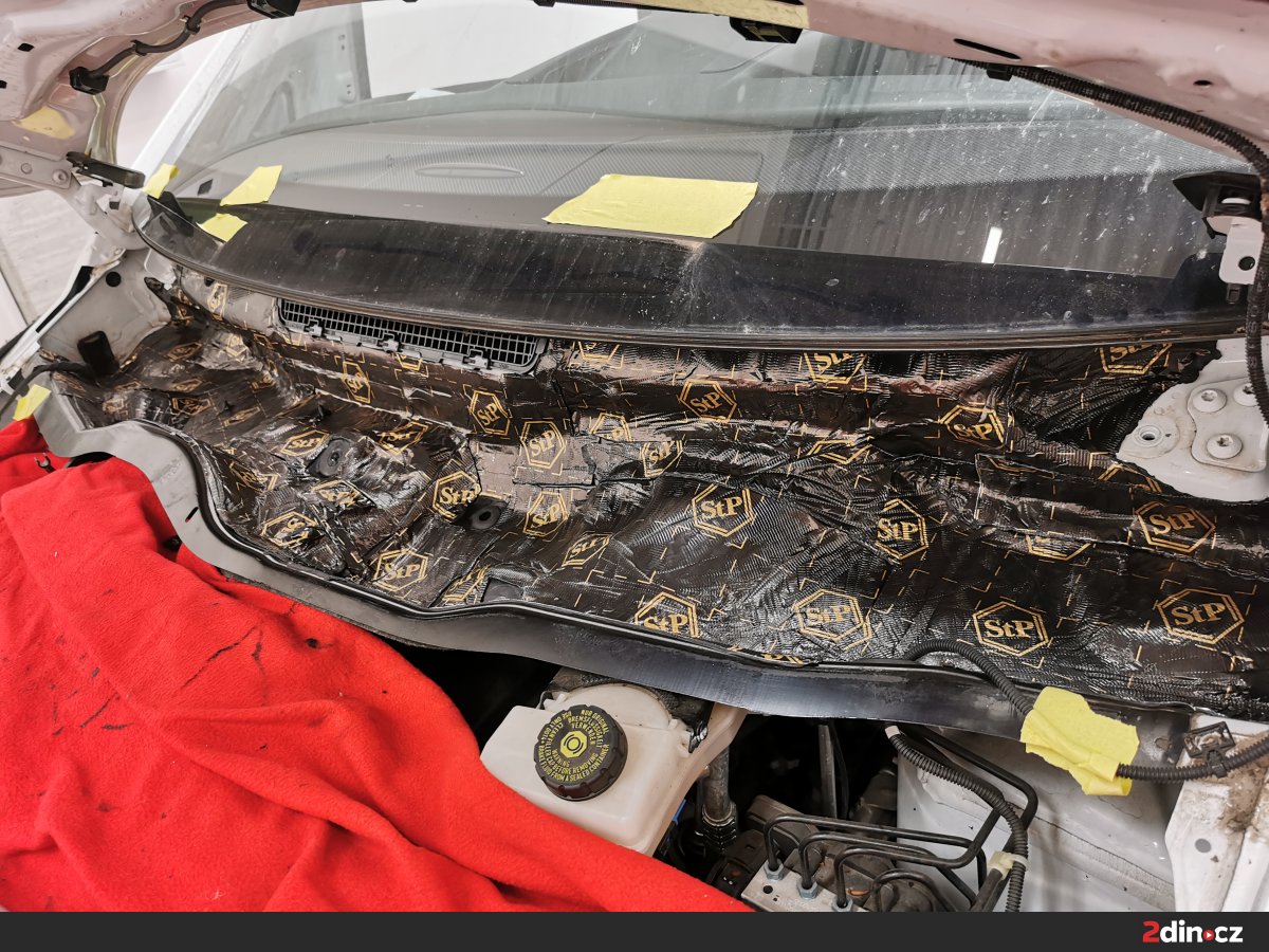 Prostor mezi motorem a kabinou je u modelu Vito výrazným zdrojem hluku. Tento prostor jsme nejprve vyztužili STP Black Gold Camo, který snížil vibrace přenášené z motoru. Na něj následně přišla vrstva STP Biplast 10, která funguje jako bariéra proti hluku a částečně i teplu. Vlivem této kombinace se do interiéru dostává méně zvuku motoru a vibrací, zejména při akceleraci. V kabině se tím vytvořilo znatelně tišší prostředí, ideální pro poslech hudby nebo pohodovou jízdu bez rušivých elementů.