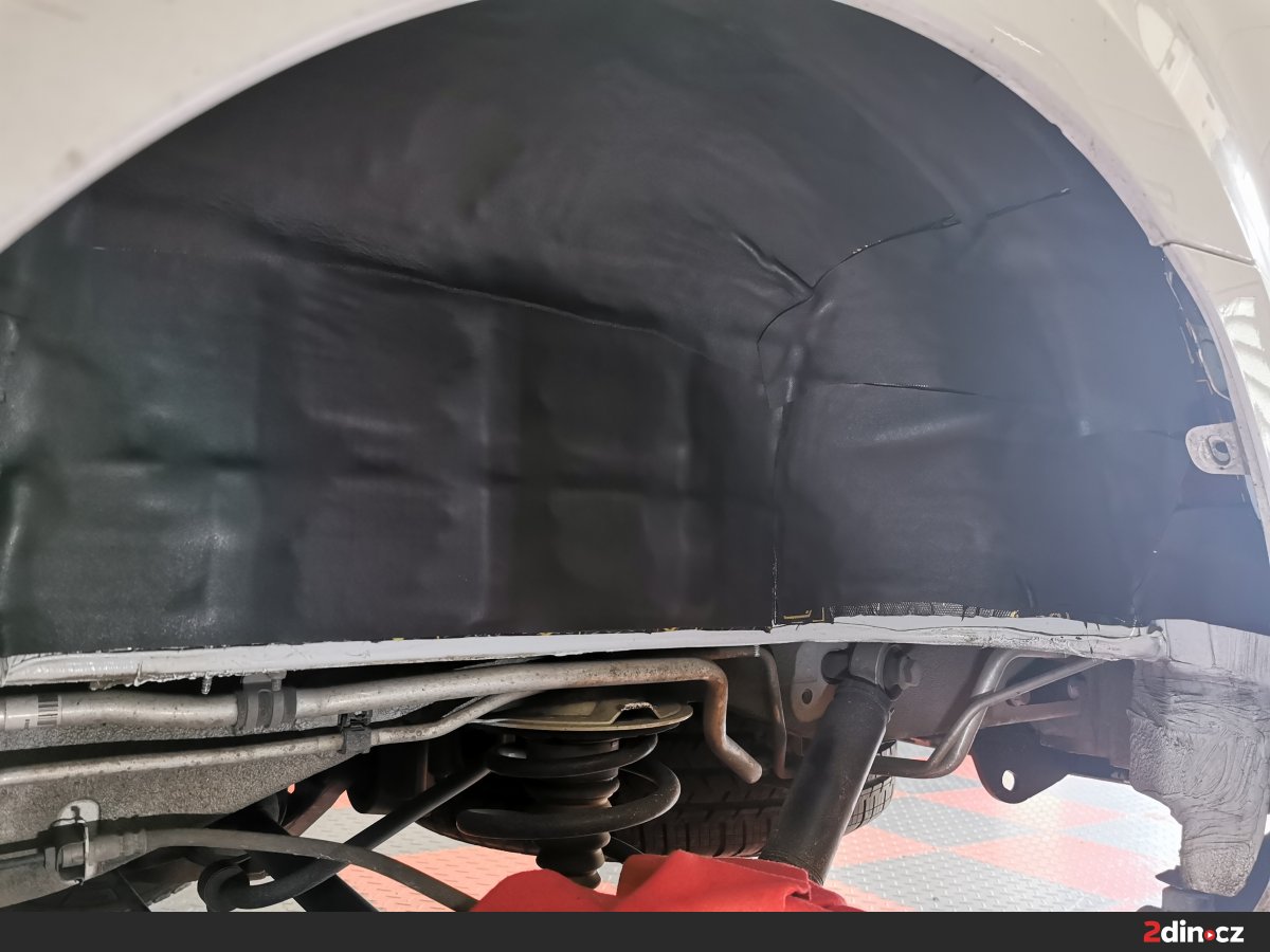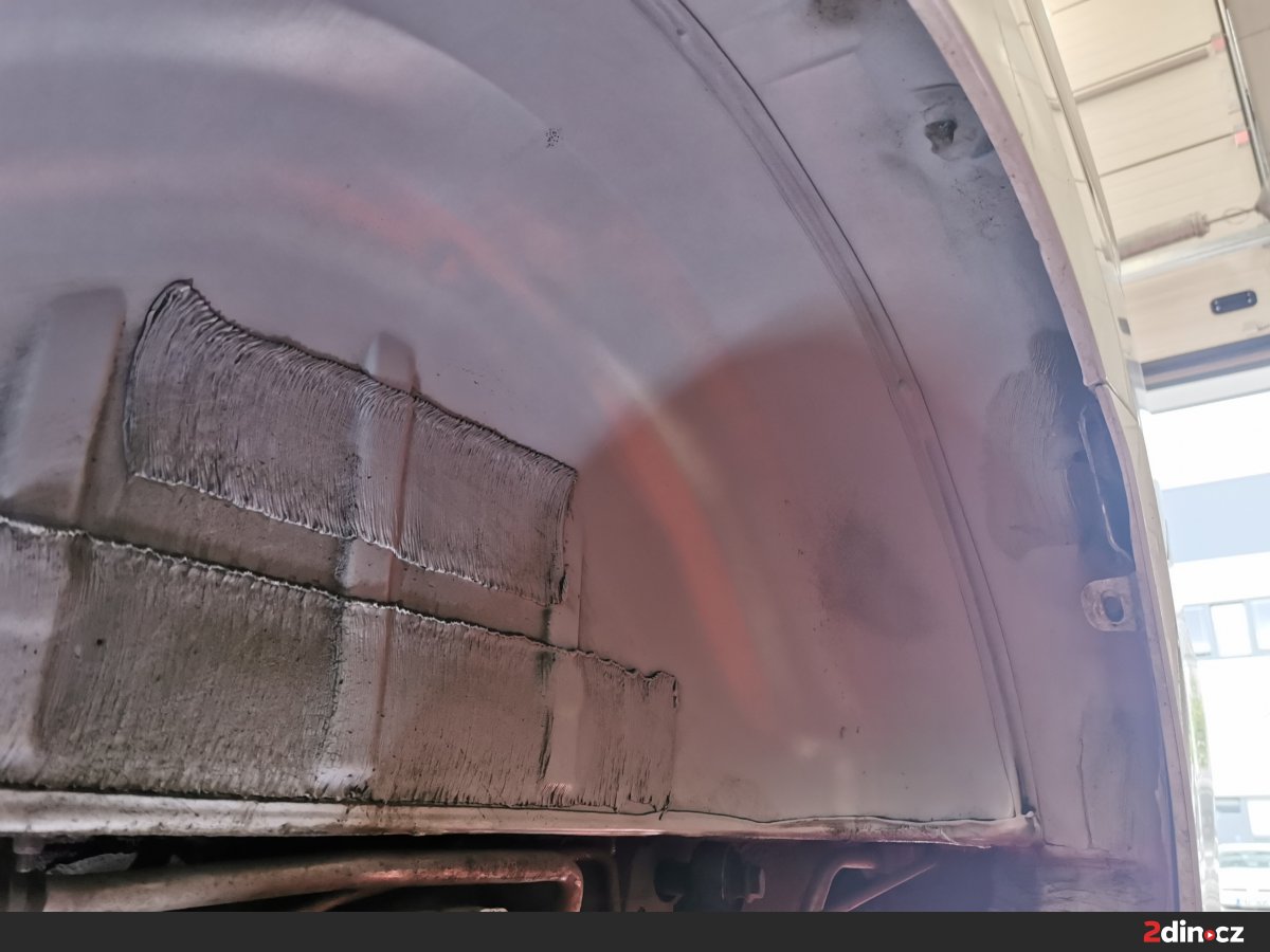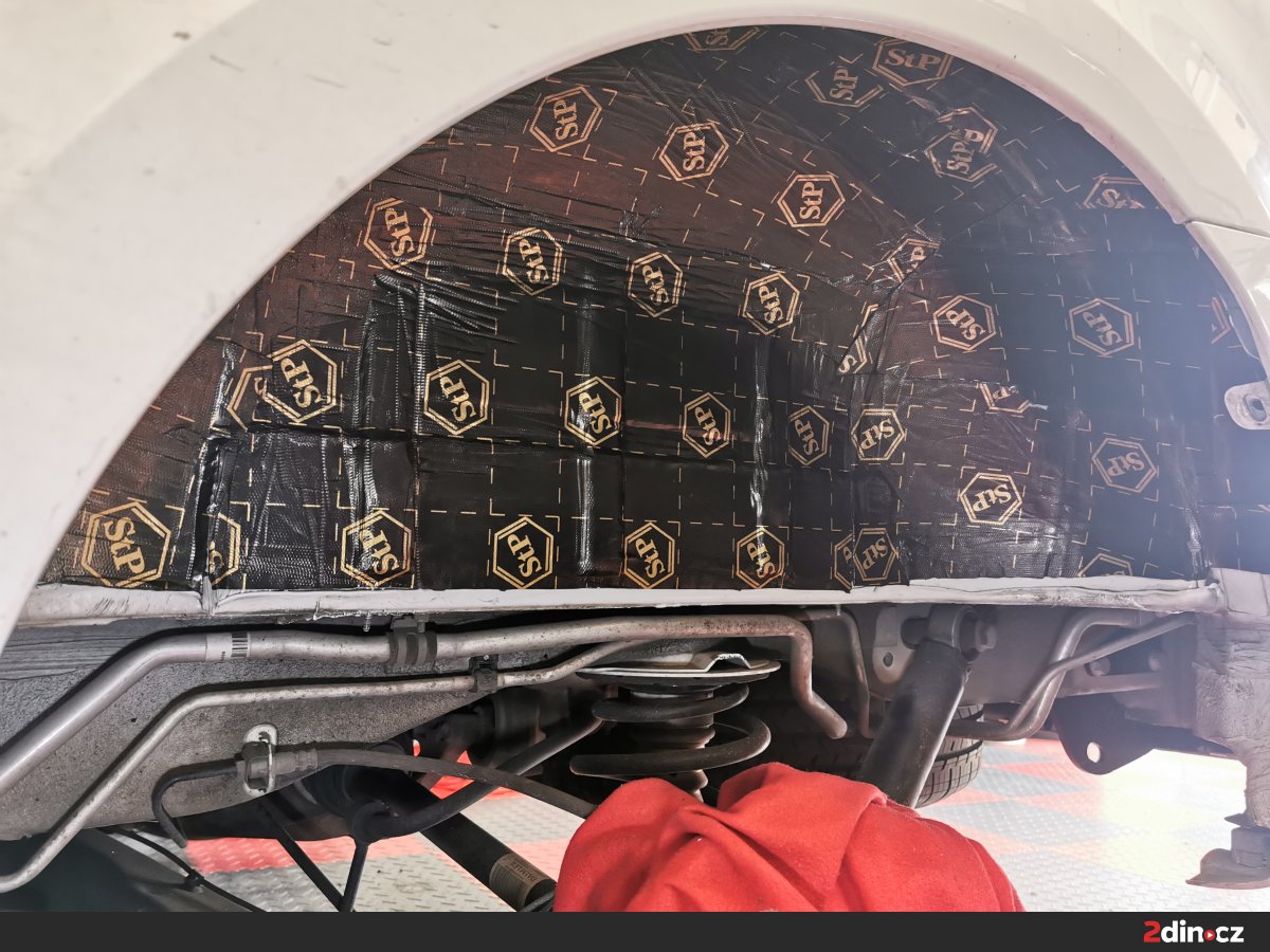 Podběhy byly zpracovány neméně důkladně – vnitřní část jsme ošetřili STP Black Silver, který díky své flexibilitě dobře přilne i na členité povrchy. Následně byla aplikována STP Biplast 10 jako druhá vrstva. Díky této kombinaci se výrazně snížil hluk od pneumatik, který je u větších vozidel s tvrdším podvozkem typický. Výsledný efekt je patrný okamžitě – kabina působí izolovaněji, zatímco hluk zvenčí je výrazně potlačen.