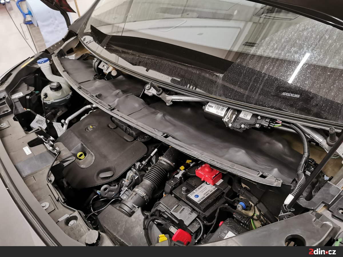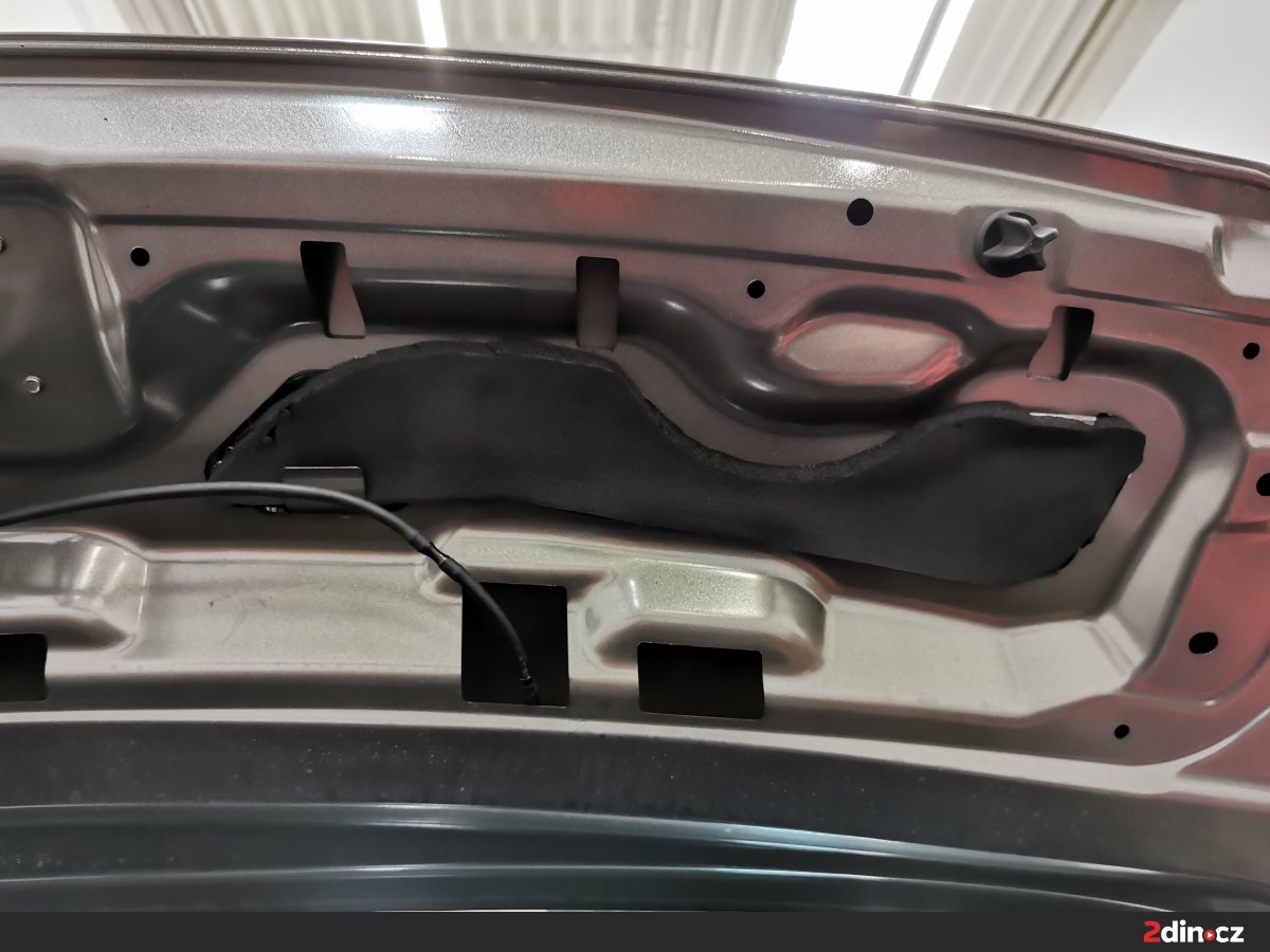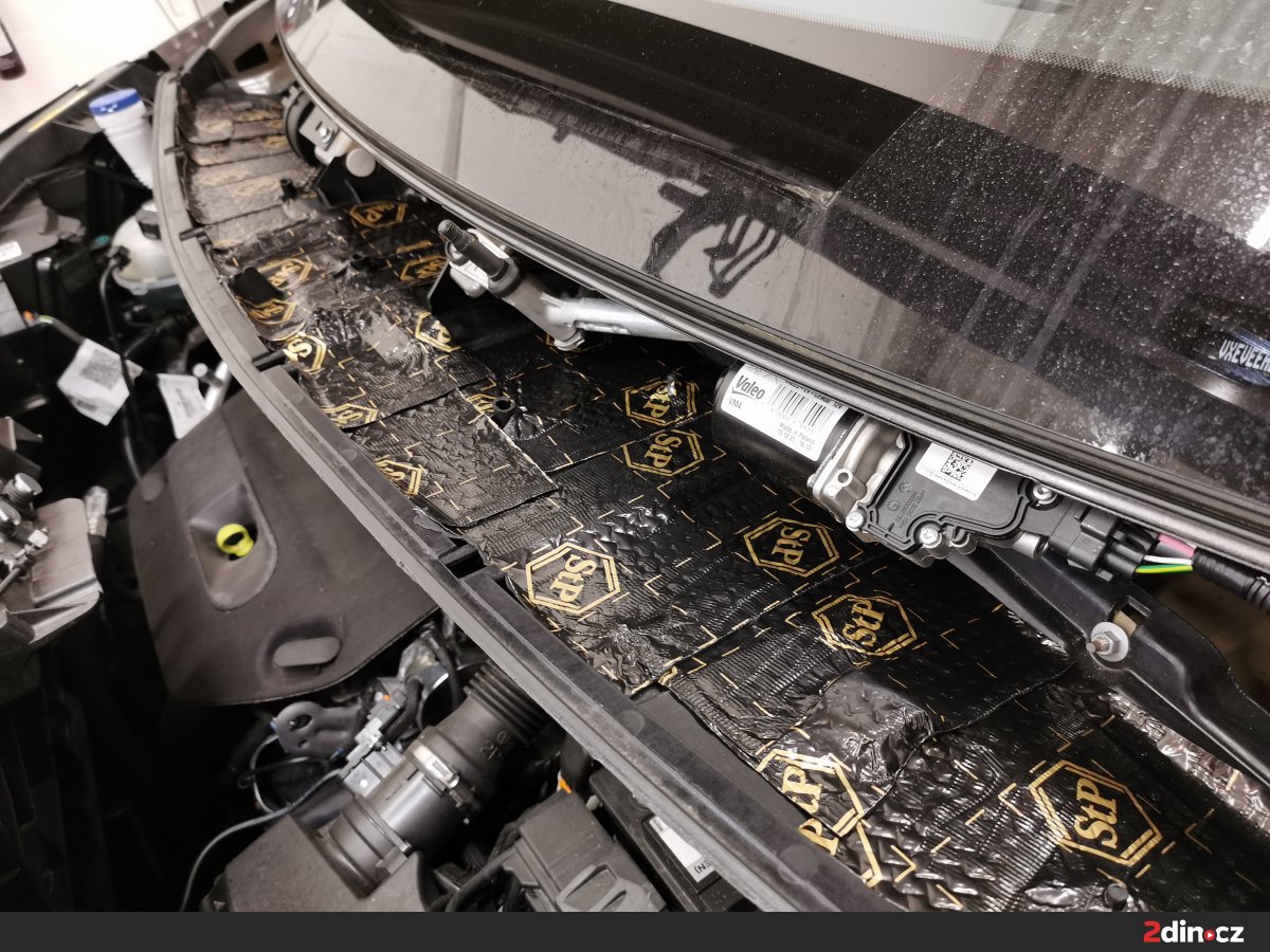 Motorová část je dalším výrazným zdrojem hluku, zejména u benzínových a dieselových motorů, které produkují vibrace a hluboké frekvence. V rámci odhlučnění byl do mezimotorového prostoru instalován antivibrační materiál STP Black Silver, jenž redukuje vibrace přenášené z motorového lože do karoserie. Následně byl prostor doplněn o termoakustický materiál STP AeroFlex 6, který kombinuje pohlcování hluku a tepelnou izolaci – čímž zabraňuje nejen hluku, ale i přenosu tepla do kabiny. Kapota byla ošetřena stejným způsobem, což přispívá k zamezení šíření hluku od motoru směrem k čelnímu sklu a dovnitř interiéru. Výsledkem je tišší kabina a snížení rušivých zvuků během jízdy.