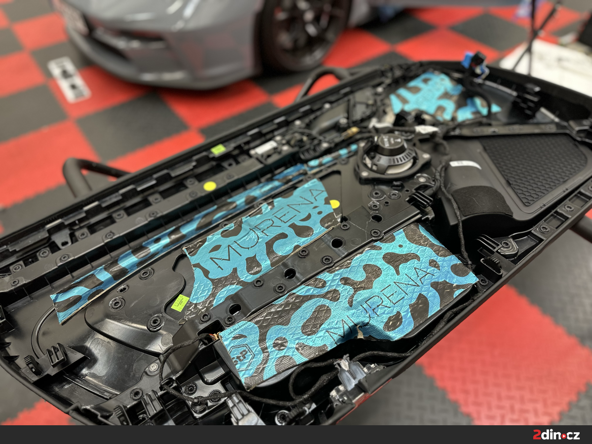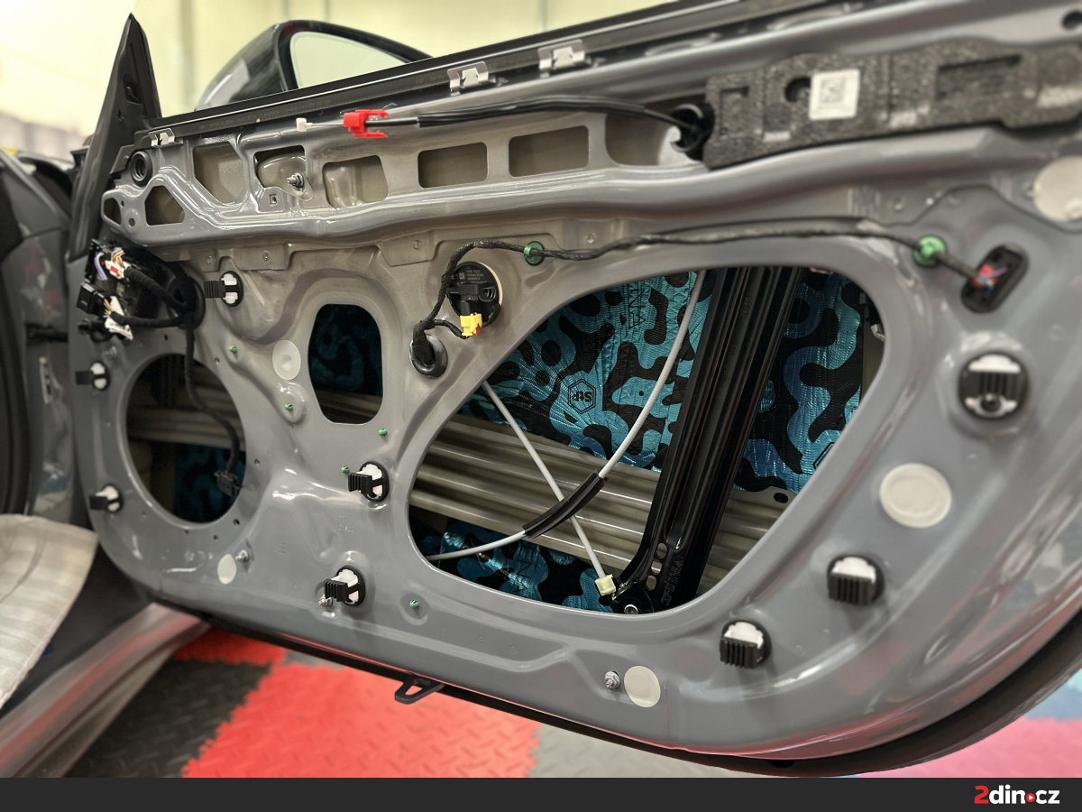 Když k nám na dílnu dorazí nějaký supersportovní krasavec, jako je právě tato gé-té-trojka, snažíme se postupovat v takovém duchu, jak zamýšlel výrobce. Čím nižší hmotnost, tím lépe. Právě proto jsme v rámci odhlučnění dveří zvolili osvědčený, vysoce účinný antivibrační materiál STP Murena, který z hlediska hmotnosti jen těžko hledá konkurenci. Odhlučněním dveří pomocí tohoto materiálu jsme dosáhli výrazného zlepšení akustiky v interiéru a zároveň vytvořili ideální podmínky, aby nové reproduktory zahrály skutečnou hitparádu. Více informací o tom, jak odhlučňujeme vozidla a jaké antivibrační materiály k tomu používáme, najdete na našem webu.