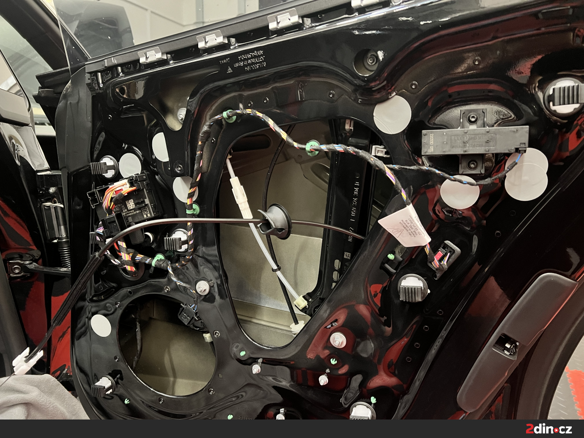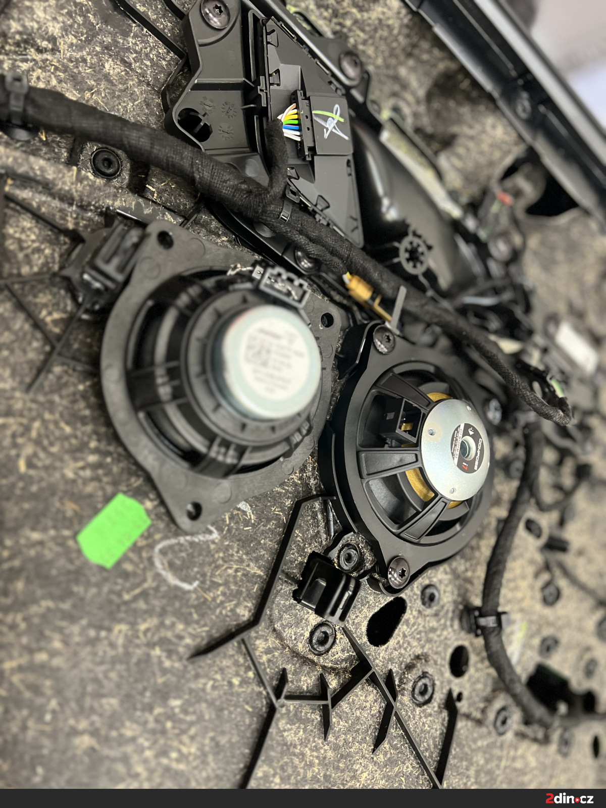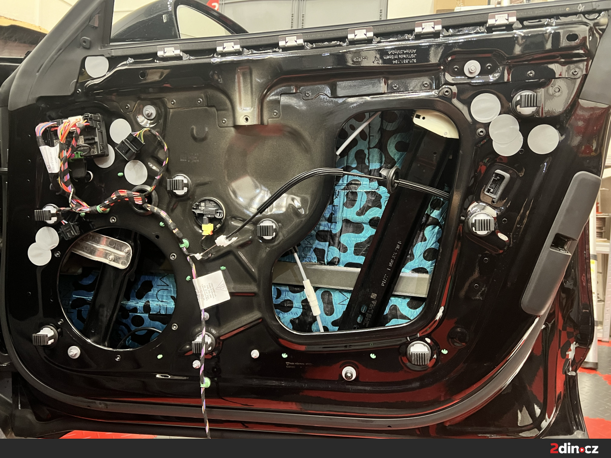 Pro dokonalý zvukový projev potřebujete ty správné podmínky. Proto jsme před samotnou instalací reproduktorů provedli rozsáhlé odhlučnění dveří a zavazadlového prostoru. Použili jsme špičkové materiály od STP – kombinaci antivibračních vrstev (Black Gold Camo, Devil’s Gold, Murena 2 a Murena 3) a akustických pohlcovačů (Biplast 10, Relief 15 Premium). Tento vícestupňový systém nejen potlačuje vibrace, a pohlcuje hluk, ale také absorbuje vnitřní rezonance a šum, což má zásadní vliv na čistotu a čitelnost reprodukované hudby. Odhlučnění nám umožnilo připravit ideální akustické prostředí pro instalované komponenty.