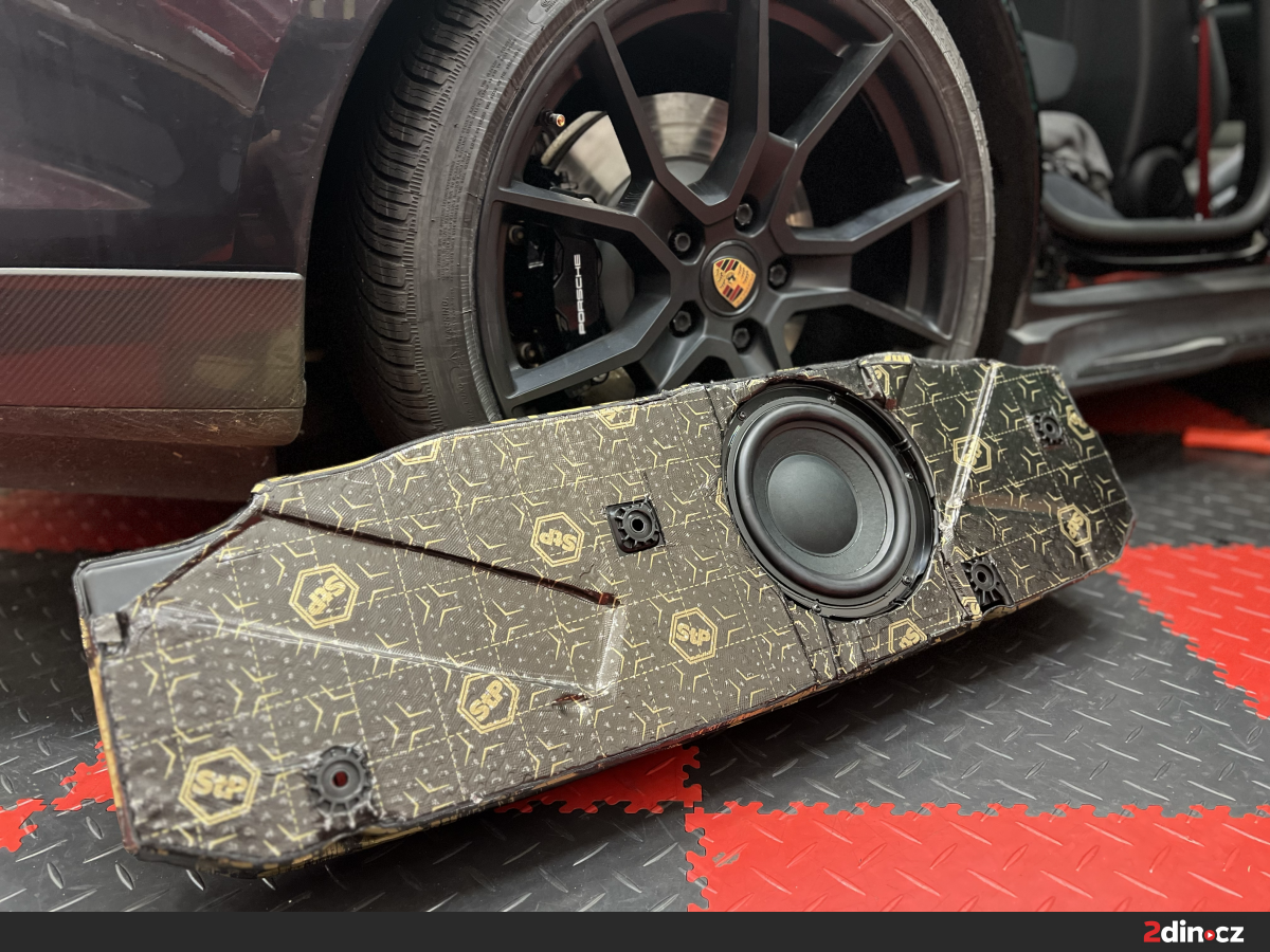 Montáž reproduktorů značky Helix – hudba v Taycanu má konečně ty správné grády