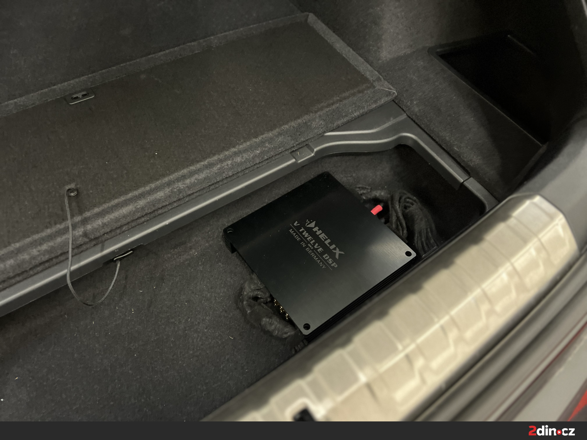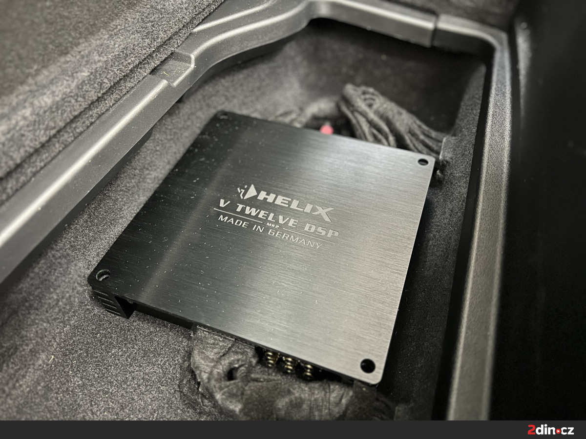 Centrálním prvkem celé instalace se stal špičkový zesilovač s DSP procesorem Helix V TWELVE DSP MK2, který kombinuje 12 kanálů a výkonný 64bitový DSP procesor. Tento zesilovač umožňuje naladit každý reproduktor zvlášť, což zahrnuje precizní nastavení EQ, výhybek, časových zpoždění a prostorových korekcí. Vzhledem k akustické náročnosti vozu bylo DSP ladění provedeno s pomocí kalibrovaného mikrofonu a softwaru DSP PC-Tool, aby bylo dosaženo maximální linearity a věrnosti zvuku.